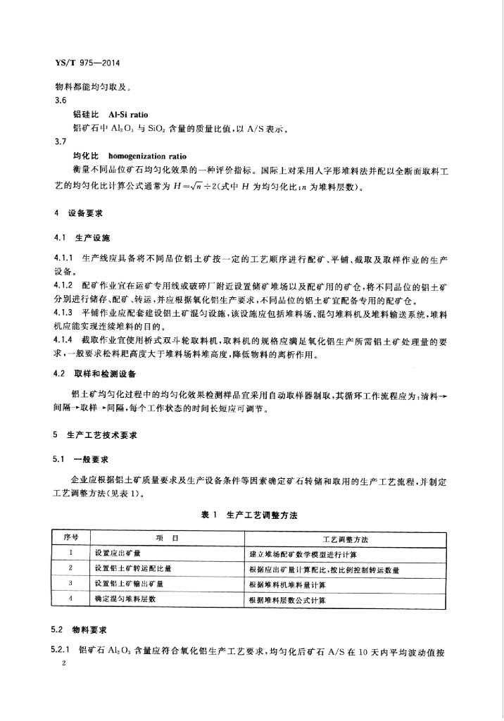YS/T 975-2014 铝土矿石均匀化技术规范