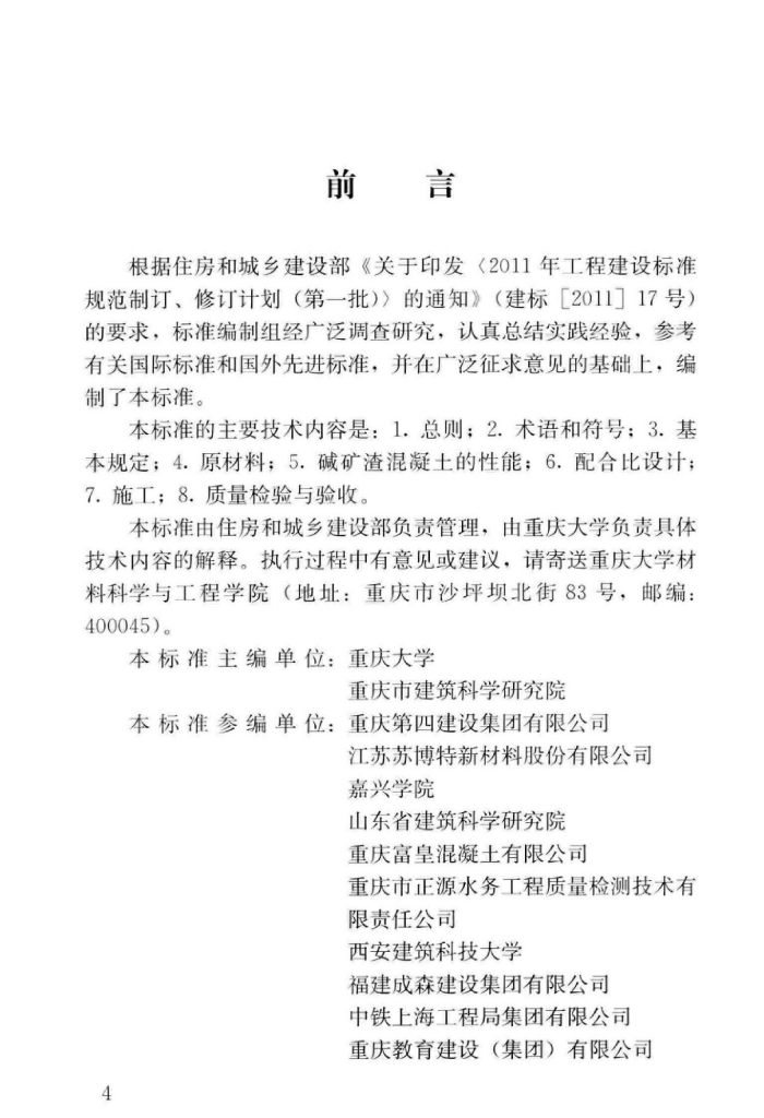 重庆大学、重庆市建筑科学研究院、重庆第四建设集团有限公司、江苏苏博特新材料股份有限公司、嘉兴学院、山东省建筑科学研究院、重庆富皇混凝土有限公司、重庆市正源水务工程质量检测技术有限责任公司、西安建筑科技大学、福建成森建设集团有限公司、中铁上海工程局集团有限公司、重庆教育建设(集团)有限公司、四川建筑职业技术学院、武汉理工大学、重庆建工住宅建设有限公司、重庆迪翔建材有限公司、方远建设集团股份有限公司、重庆市交通委员会工程质量安全监督局