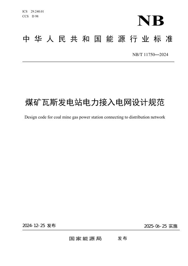 NB/T 11750-2024 煤矿瓦斯发电站电力接入电网设计规范