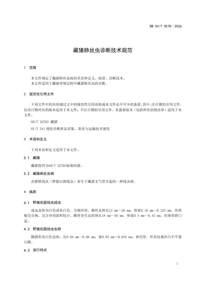 DB54/T 0578-2026 藏猪肺丝虫诊断技术规范