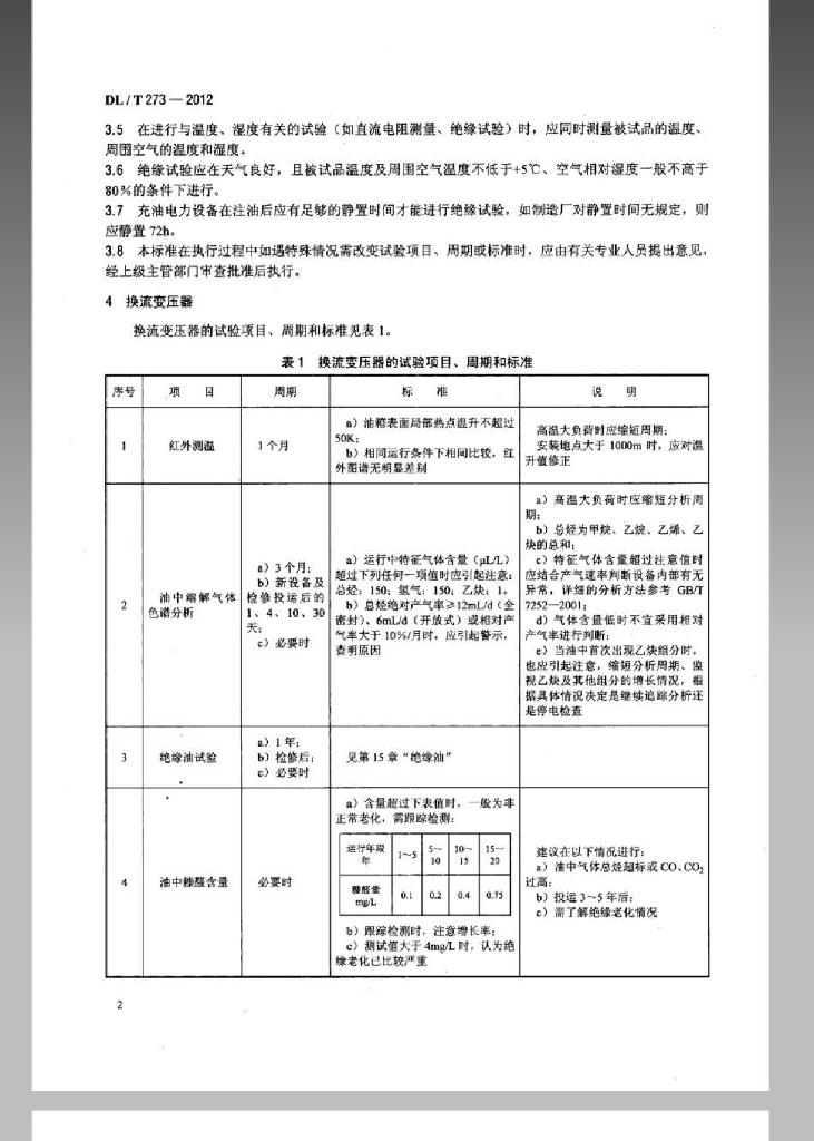 DL/T 273-2012 ±800kV特高压直流设备预防性试验规程