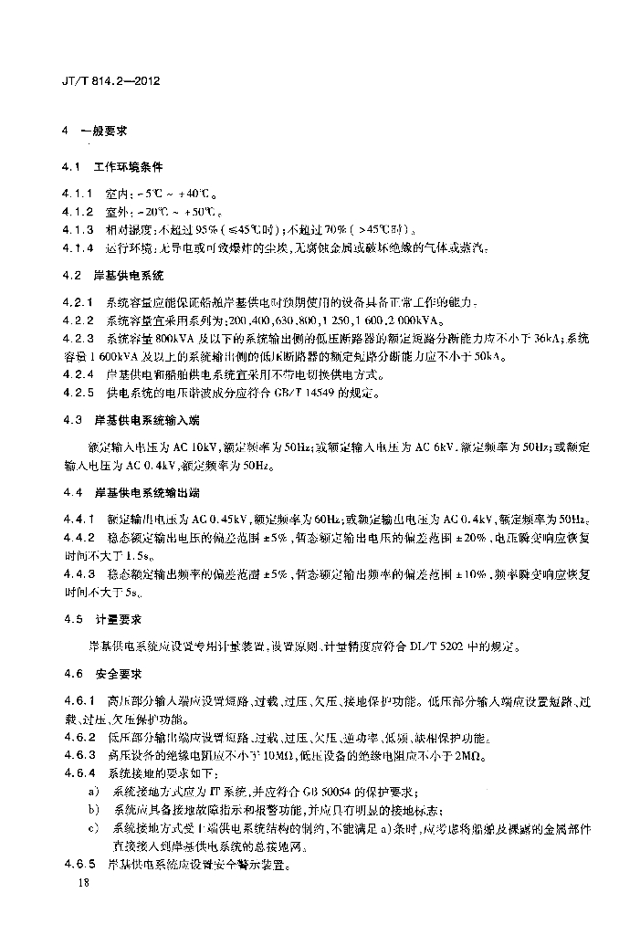 JT/T 814.2-2012 港口船舶岸基供电系统技术条件 第2部分:低压上船
