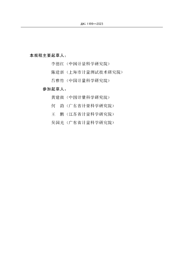 李德红(中国计量科学研究院)、陈建新(上海市计量测试技术研究院)、吕雅竹(中国计量科学研究院)、黄建微(中国计量科学研究院)、何韵(广东省计量科学研究院)、王鹏(江苏省计量科学研究院)、吴国光(广东省计量科学研究院)