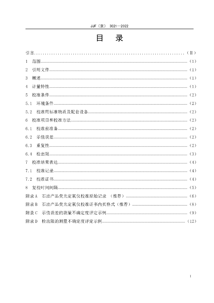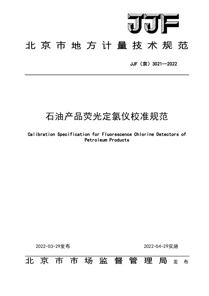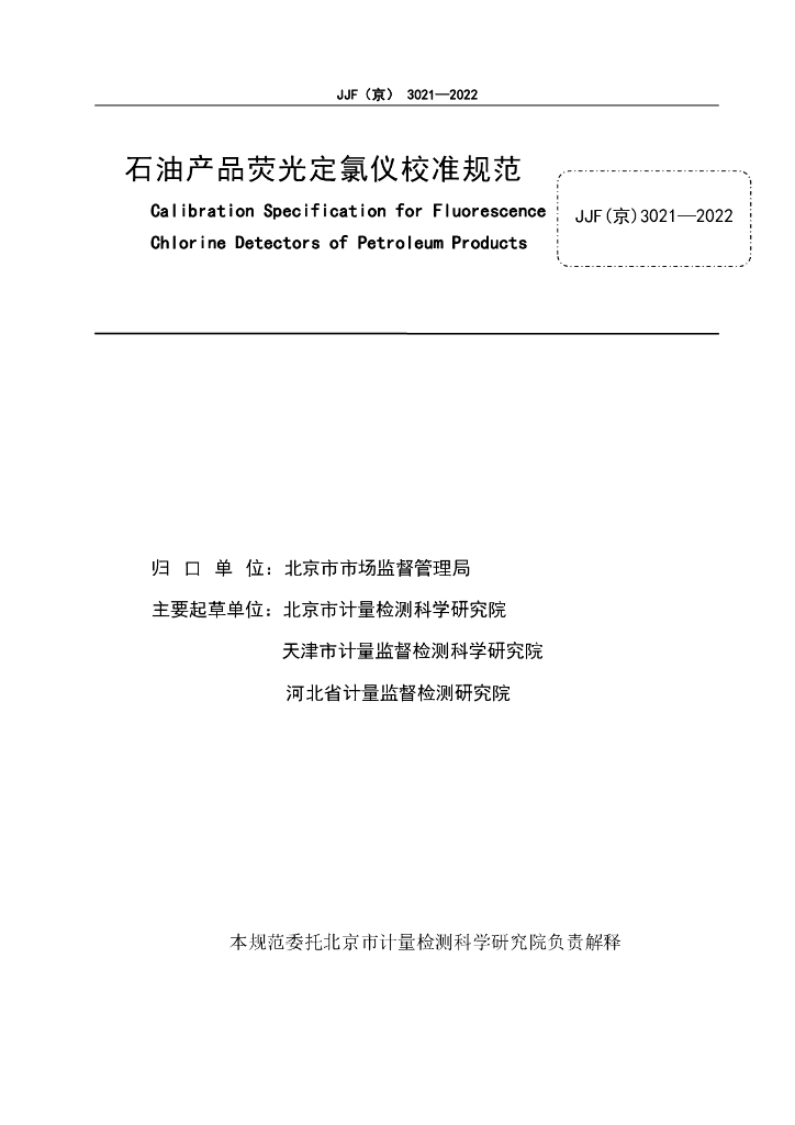 JJF(京)3021-2022 石油产品荧光定氯仪校准规范