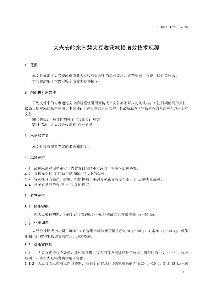 DB15/T 4321-2026 大兴安岭东南麓大豆收获减损增效技术规程