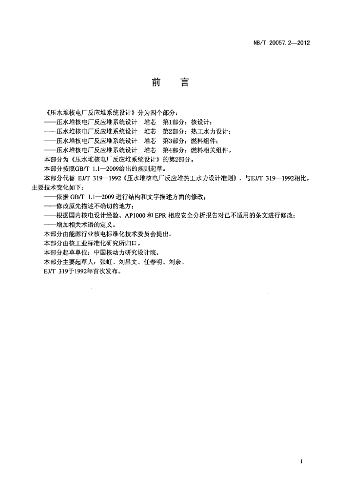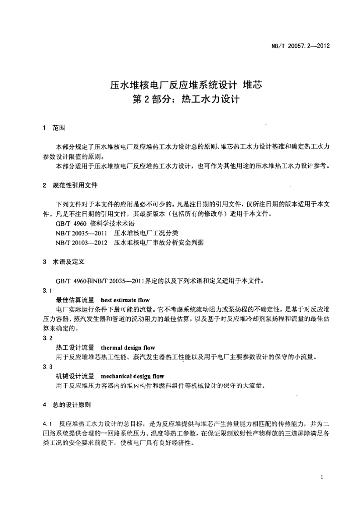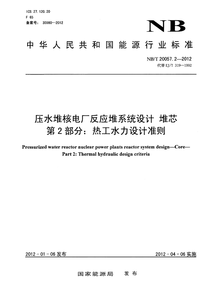 NB/T 20057.2-2012 压水堆核电厂反应堆系统设计堆芯 第2部分:热工水力设计准则