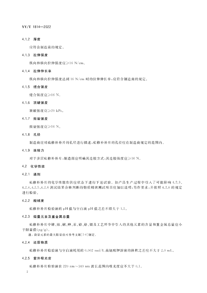 YY/T 1814-2022 外科植入物 合成不可吸收补片 疝修补补片