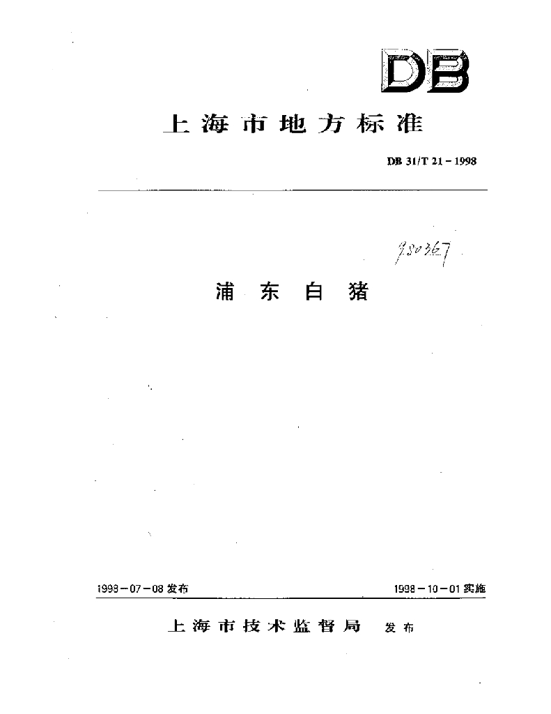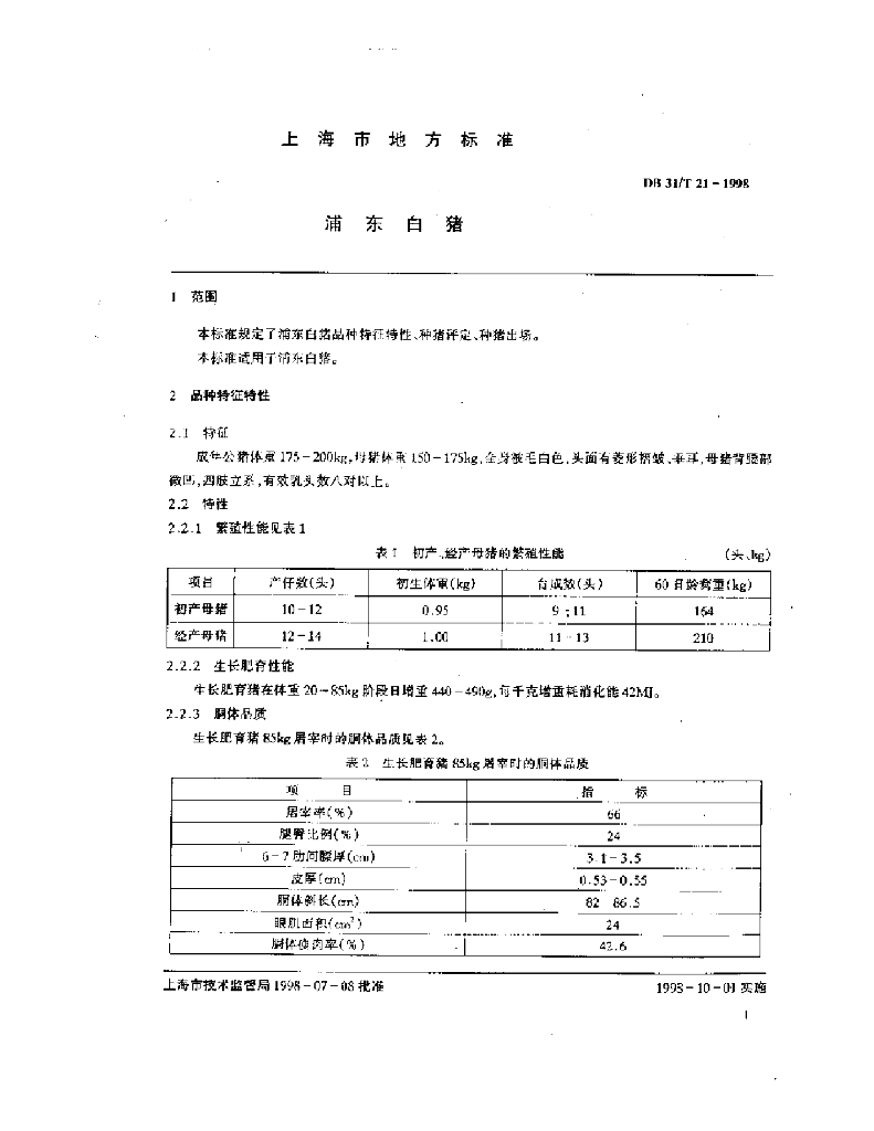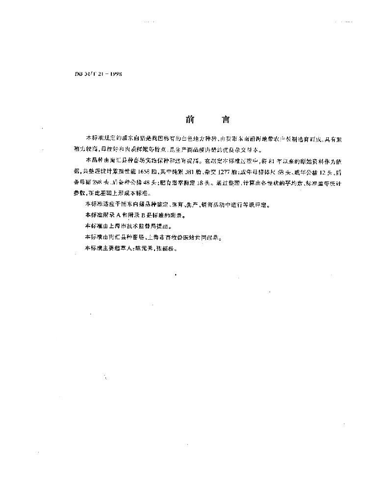 DB31/T 21-1998 浦东白猪
