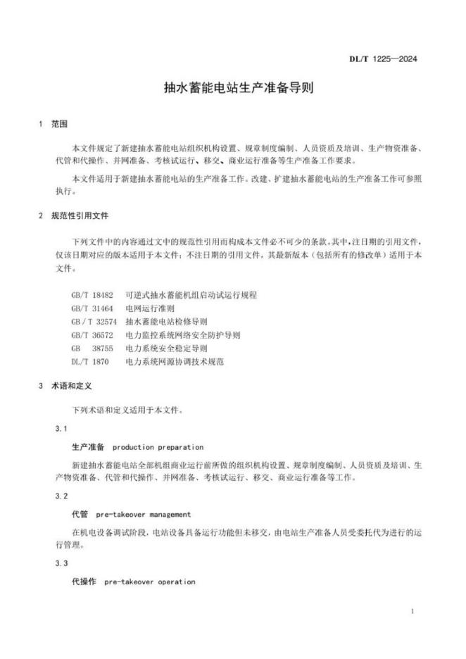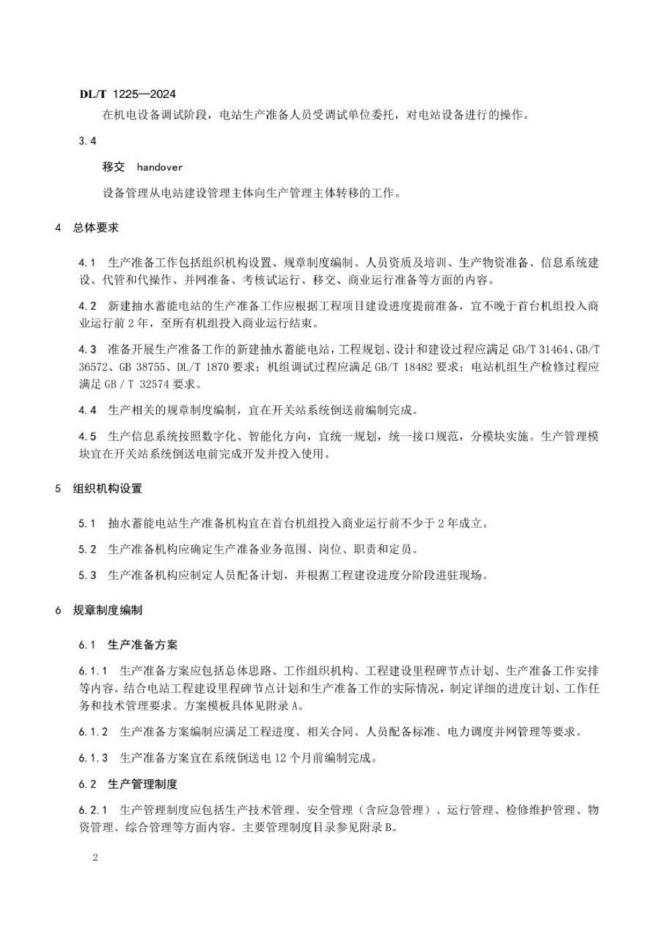 DL/T 1225-2024 抽水蓄能电站生产准备导则