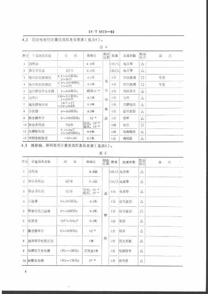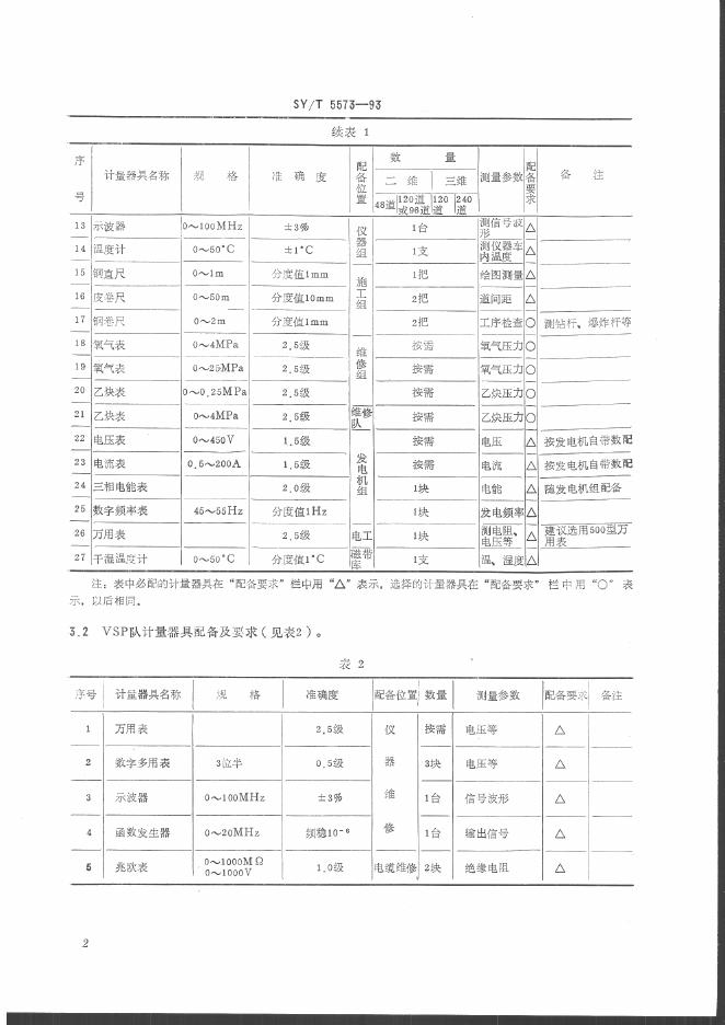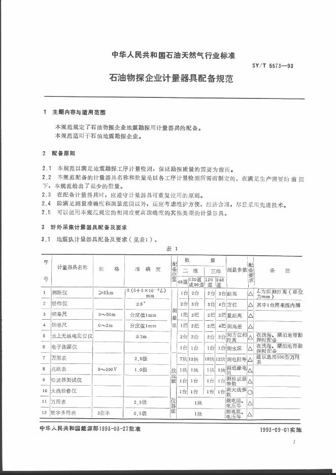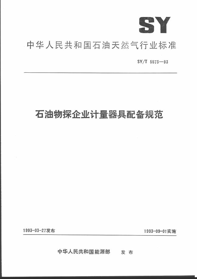 SY/T 5573-1993 石油物探企业计量器具配备规范