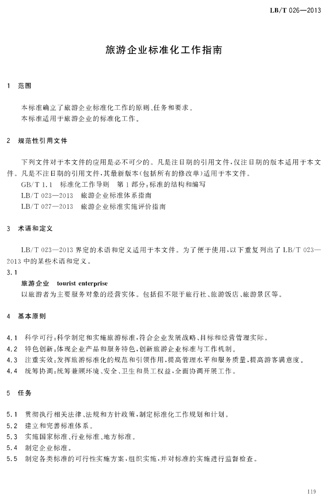 LB/T 026-2013 旅游企业标准化工作指南