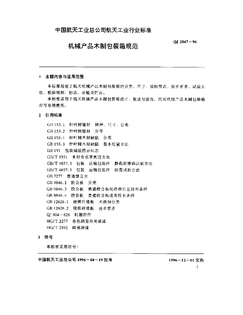 QJ 2847-1996 机械产品木制包装箱规范