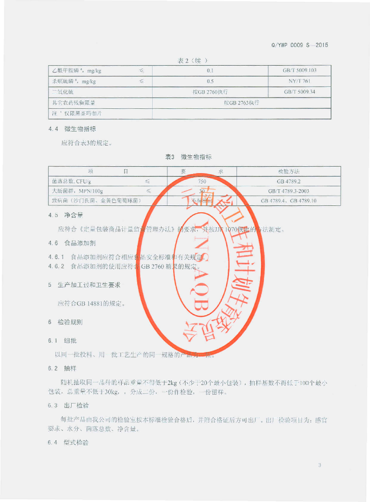 Q/YWP 0009S-2015 云南物产进出口集团股份有限公司跑马山分公司 玛咖片(压片糖果)