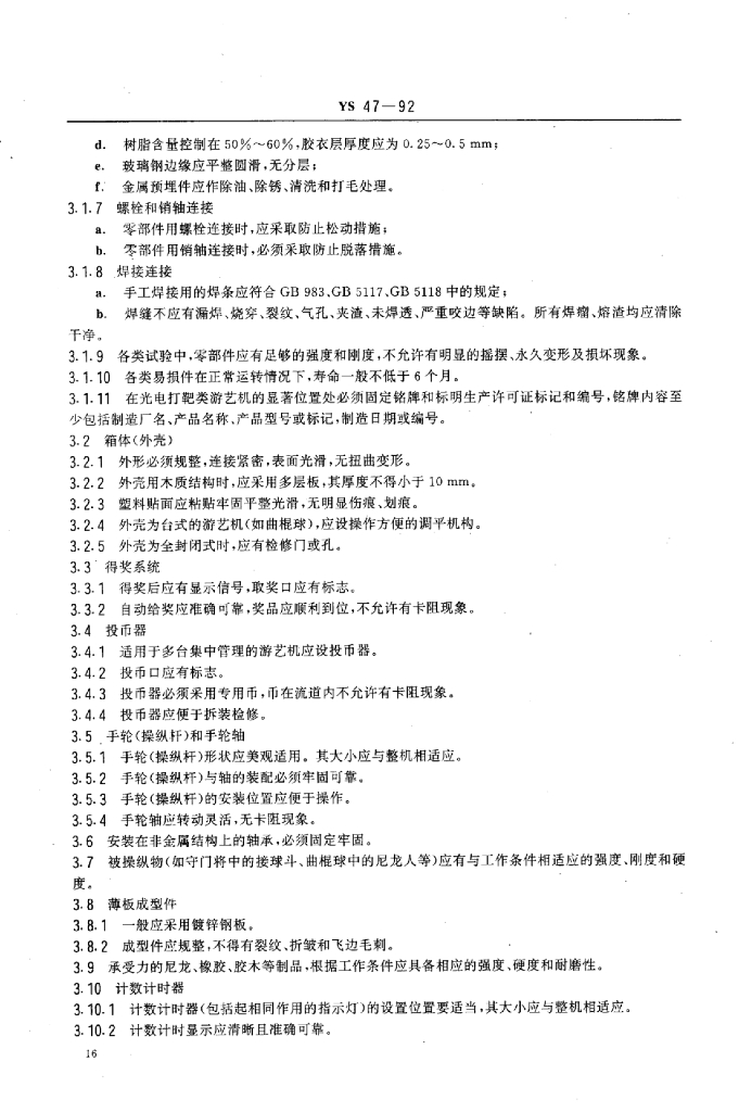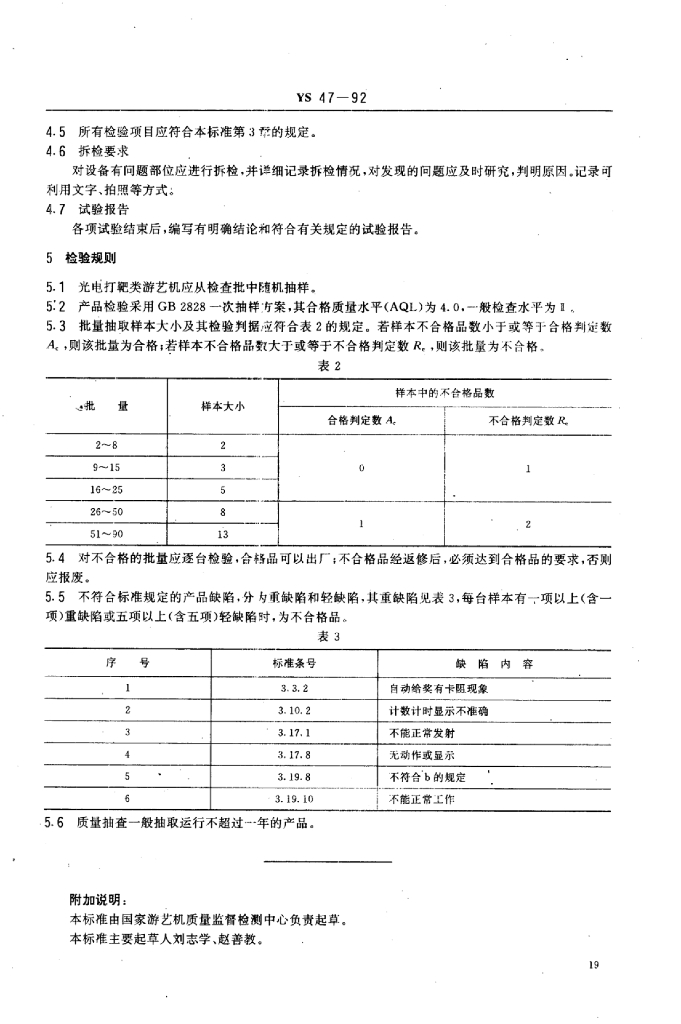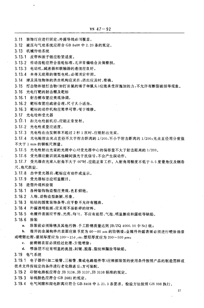 YS 47-1992 光电打靶类游艺机通用技术条件
