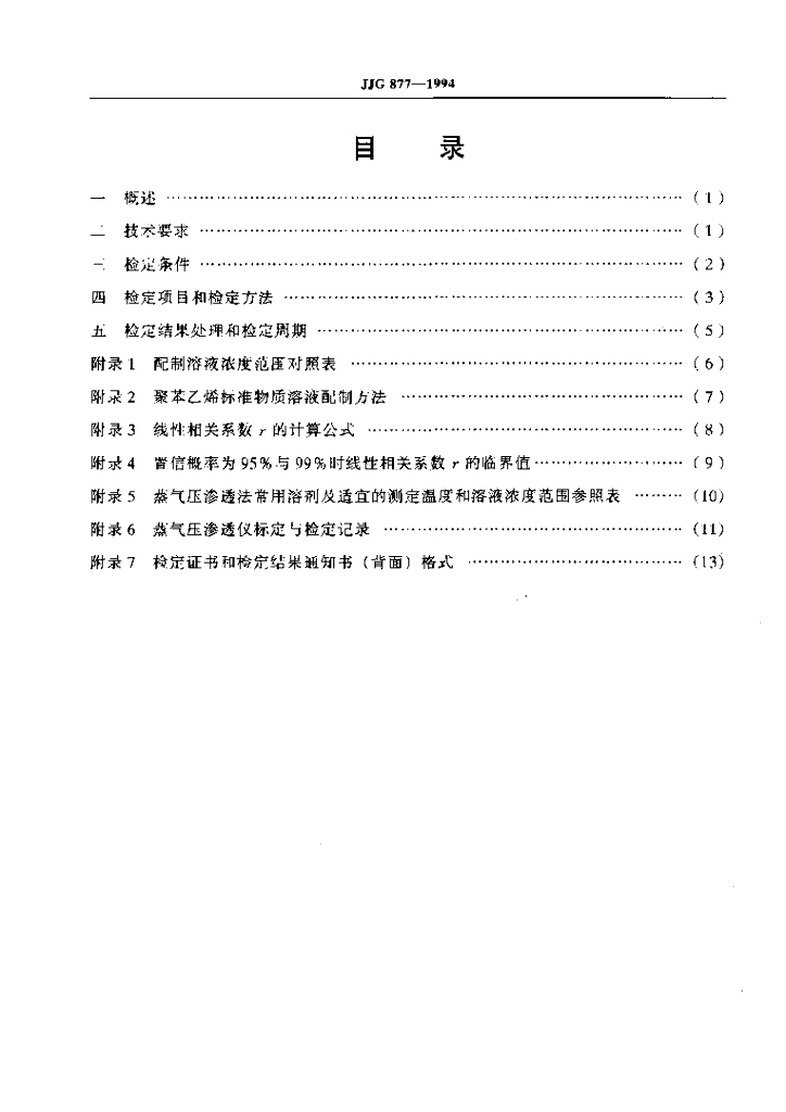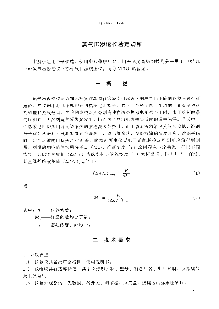 JJG 877-1994 蒸气压渗透仪检定规程