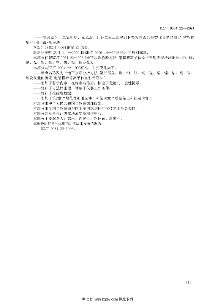 DZ/T 0064.22-2021 地下水质分析方法 第22部分:铜、铅、锌、镉、锰、铬、镍、钴、钒、锡、铍及钛量的测定电感耦合等离子体发射光谱法