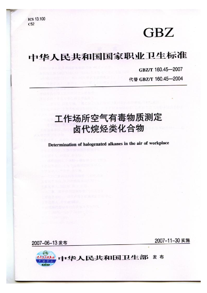 - 代替标准:GBZ/T 160.45-2004
