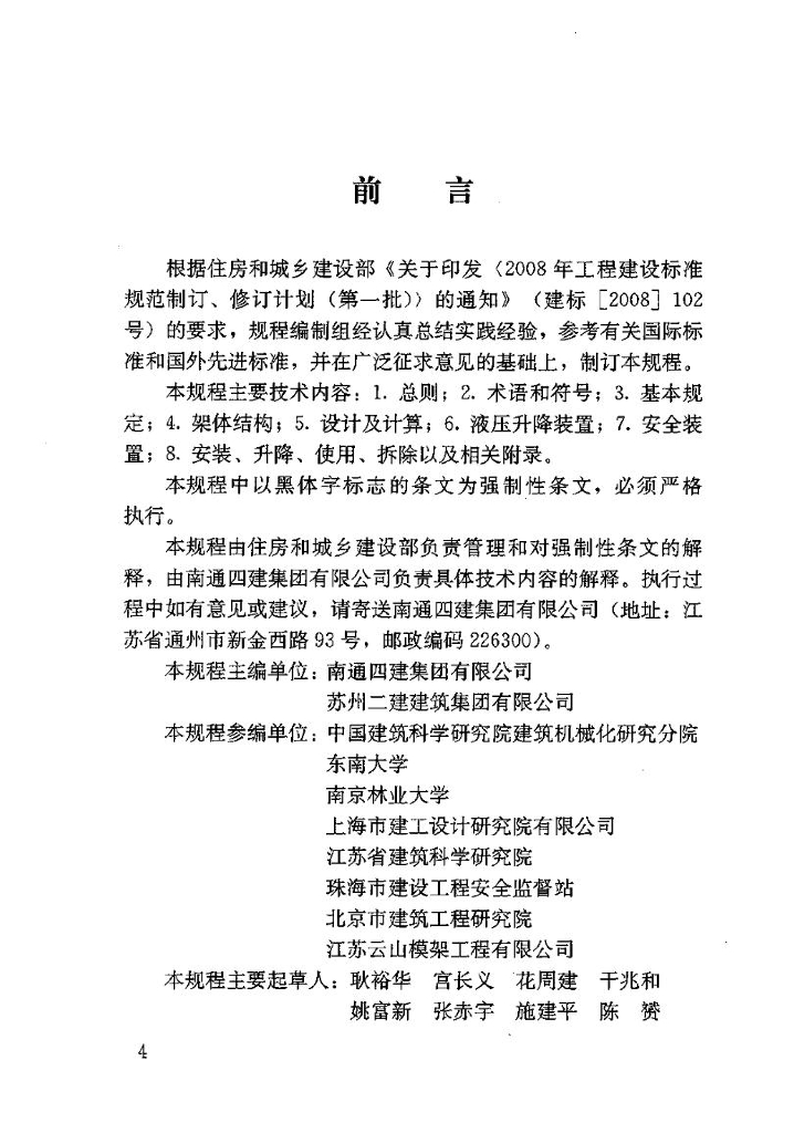 南通四建集团有限公司、苏州二建建筑集团有限公司、中国建筑科学研究院建筑机械化研究分院、东南大学、南京林业大学、上海市建工设计研究院有限公司、江苏省建筑科学研究院、珠海市建设工程安全监督站、北京市建筑工程研究院、江苏云山模架工程有限公司