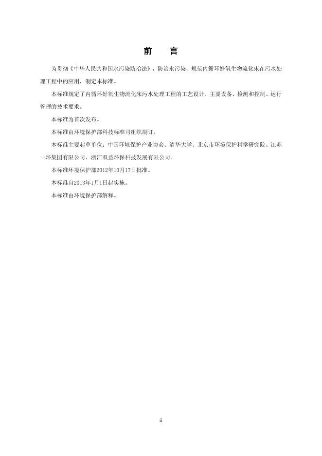 HJ 2021-2012 内循环好氧生物流化床污水处理工程技术规范