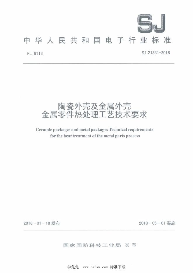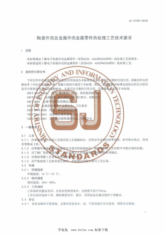 SJ 21331-2018 陶瓷外壳及金属外壳 金属零件热处理工艺技术要求