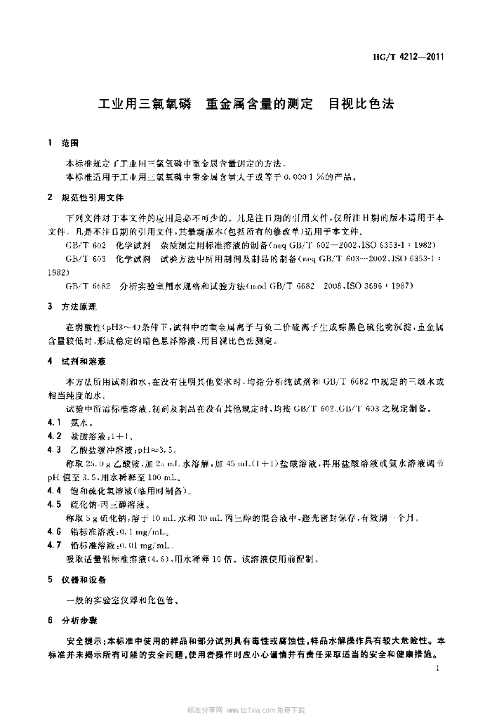HG/T 4212-2011 工业用三氯氧磷重金属含量的测定 目视比色法