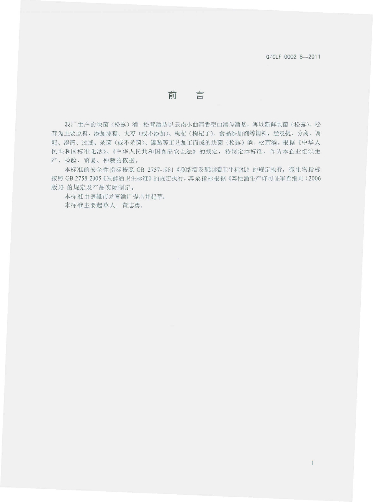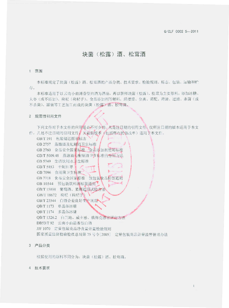 Q/CLF 0002S-2011 块菌(松露)酒、松茸酒