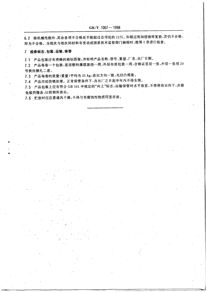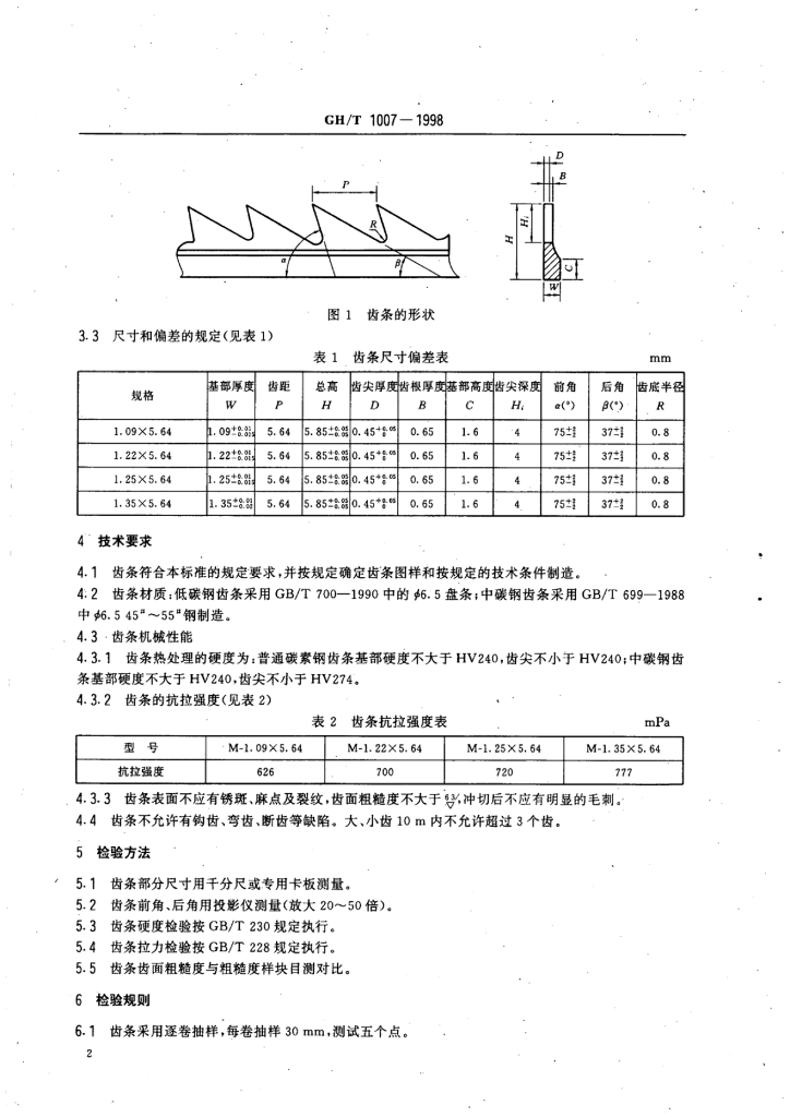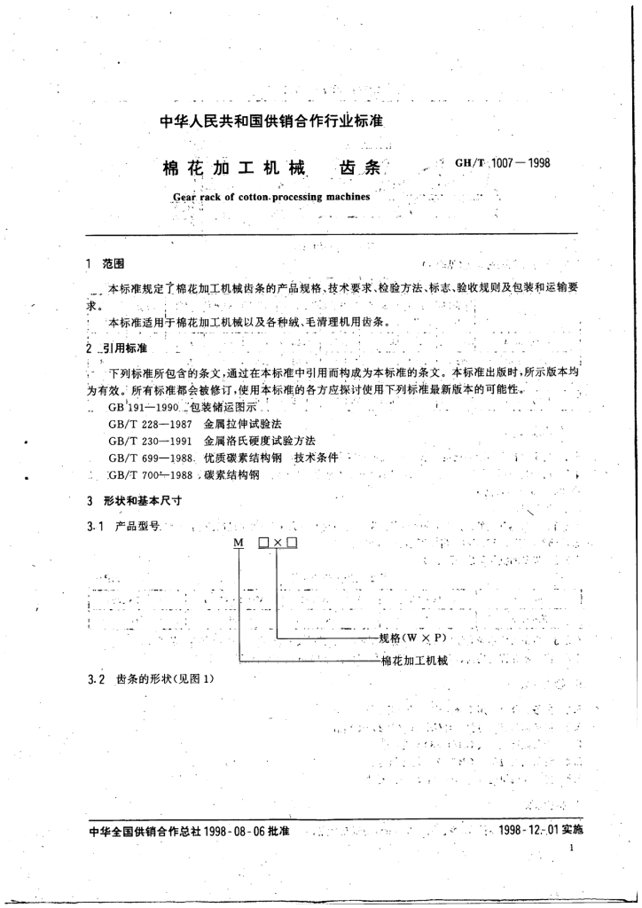 GH/T 1007-1998 棉花加工机械 齿条