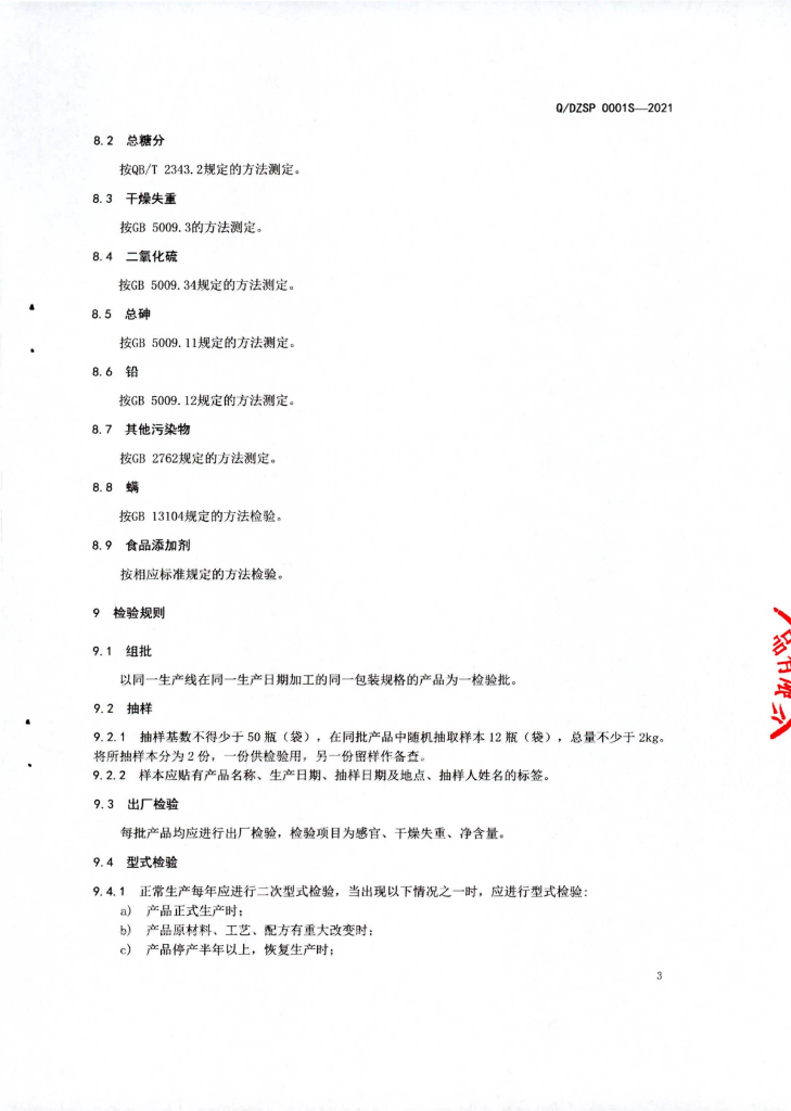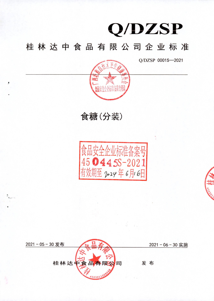Q/DXSP 0001S-2021 食糖(分装)
