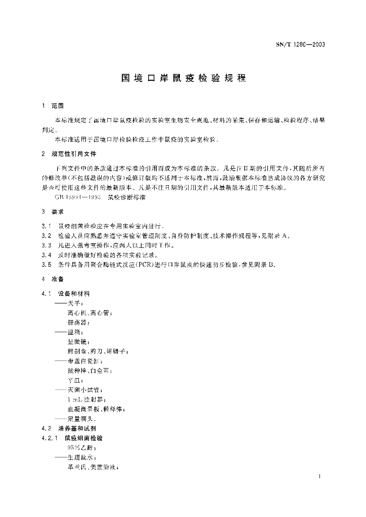 SN/T 1280-2003 国境口岸鼠疫检验规程