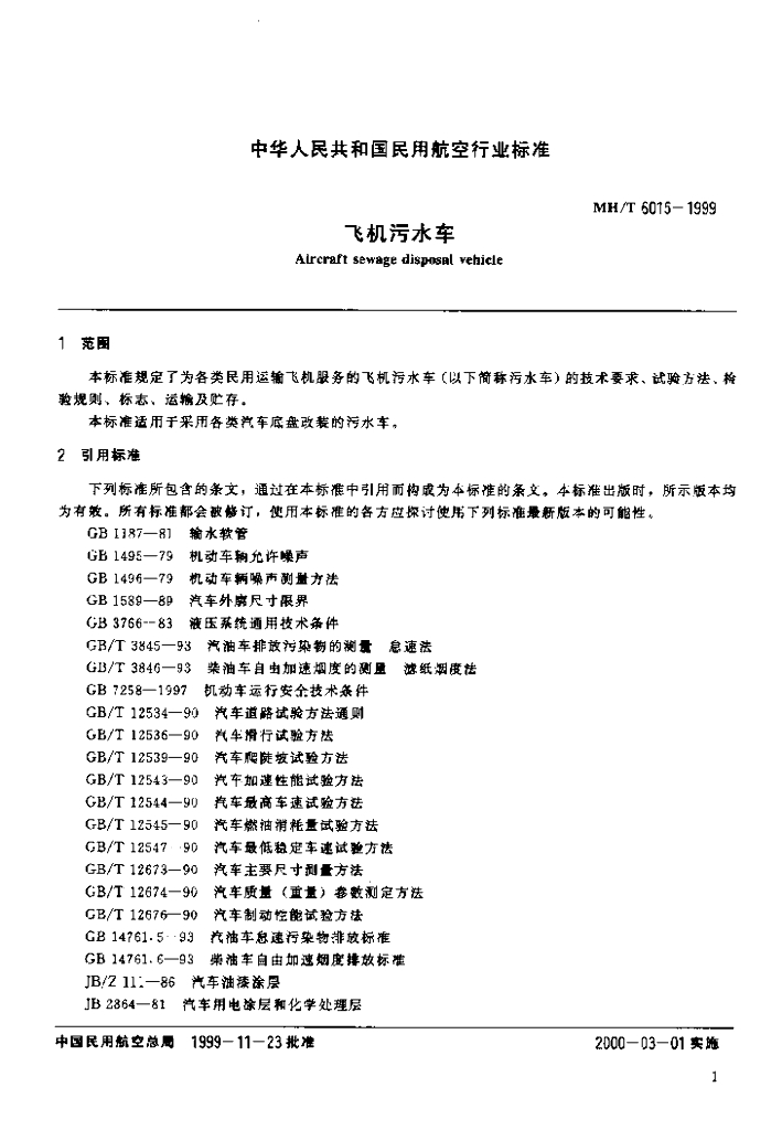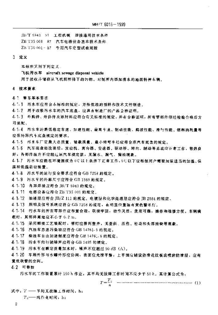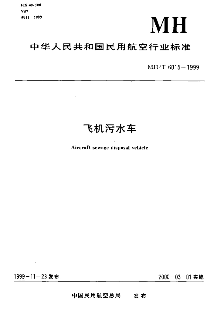 MH/T 6015-1999 飞机污水车
