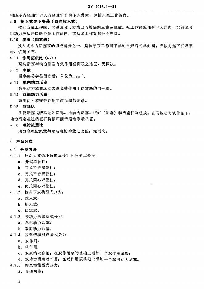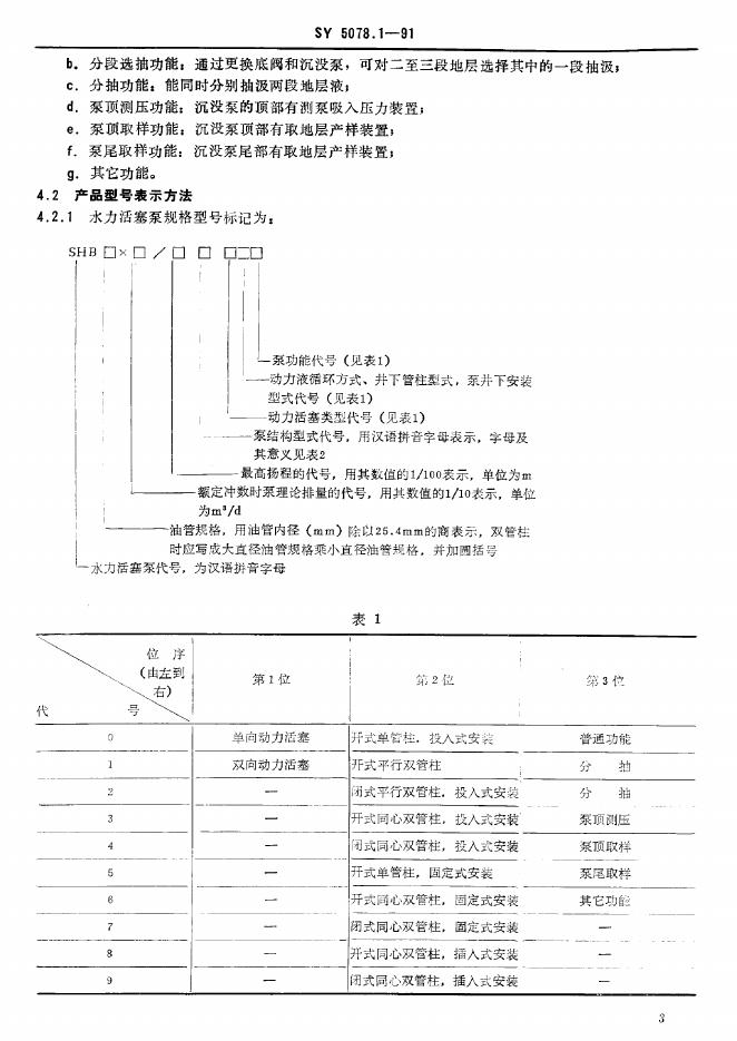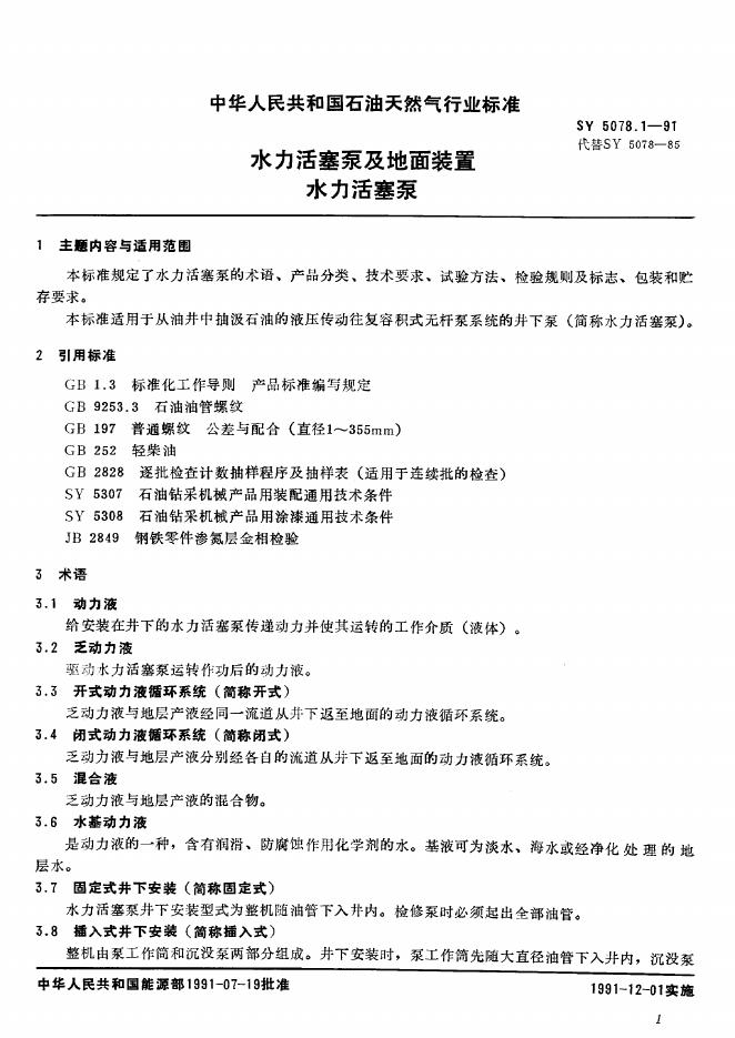 SY 5078.1-1991 水力活塞泵及地面装置 水力活塞泵