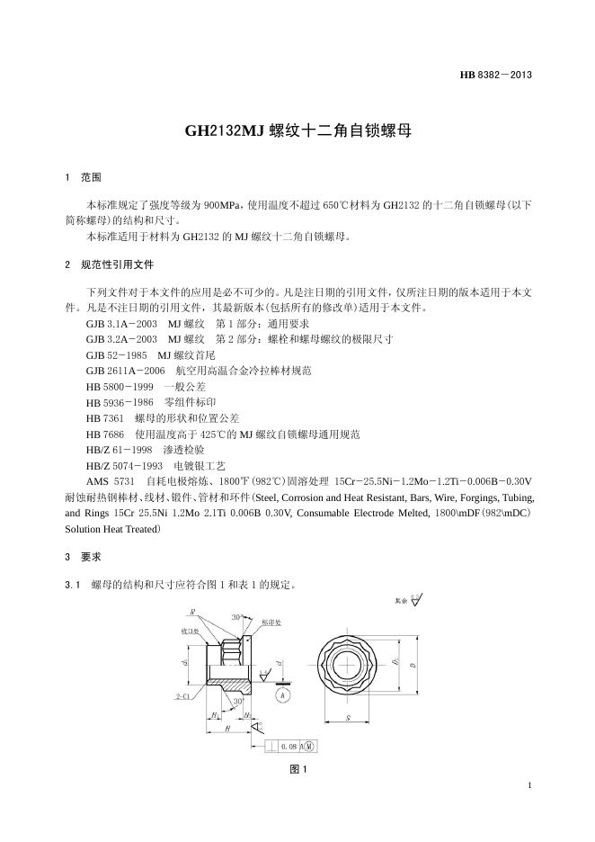 HB 8382-2013(2017) GH2132 MJ螺纹十二角自锁螺母