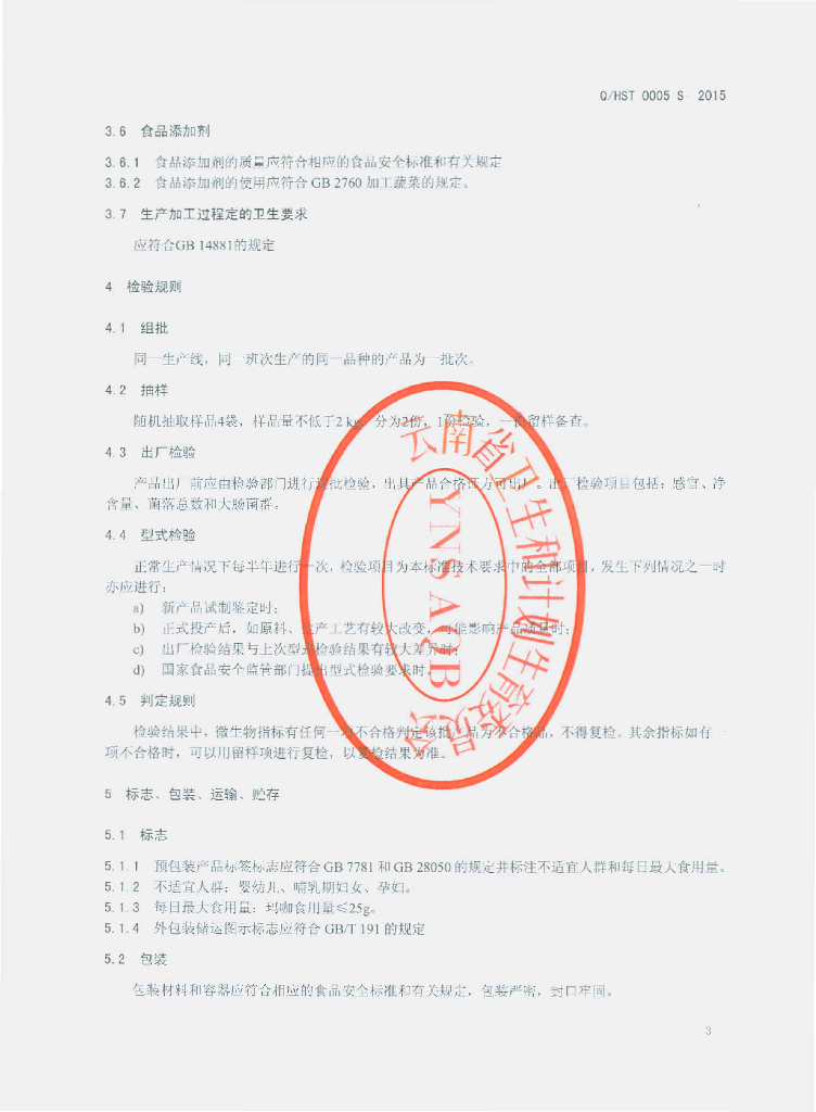 Q/HST 0005S-2015 丽江红顺堂生物科技开发有限公司 保鲜玛咖