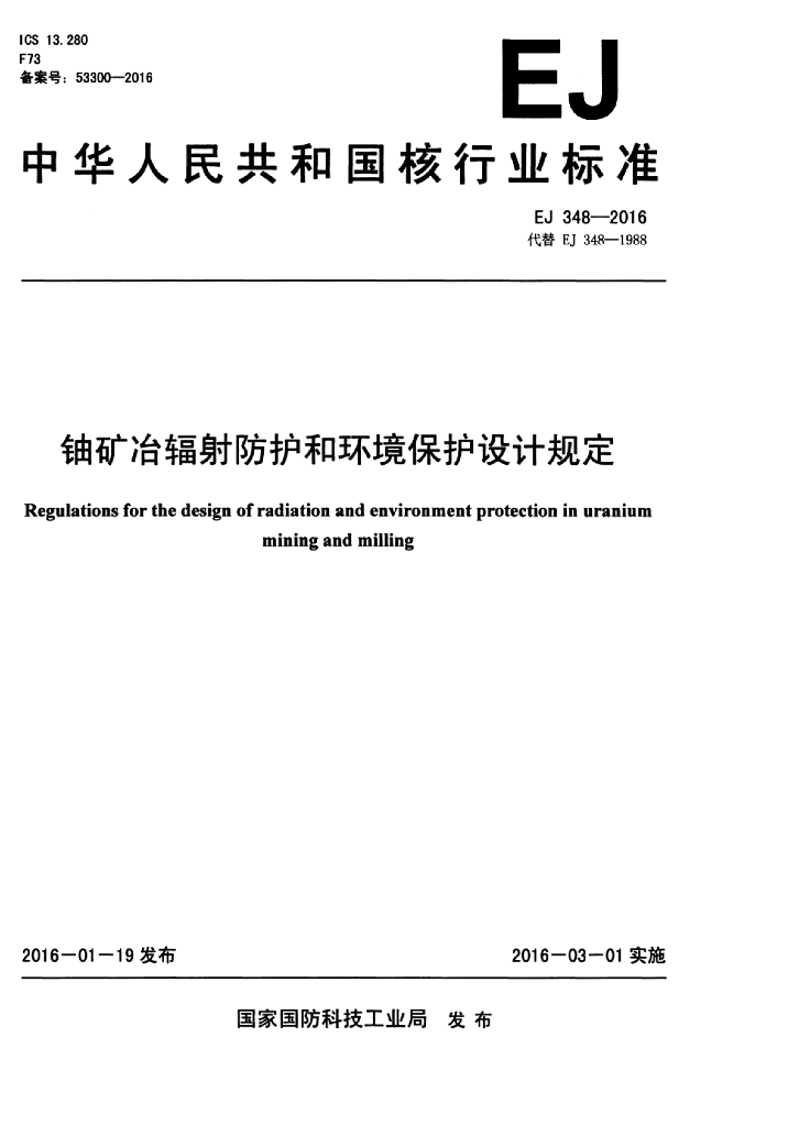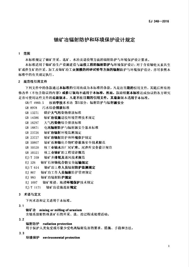 EJ 348-2016 铀矿冶辐射防护和环境保护设计规定