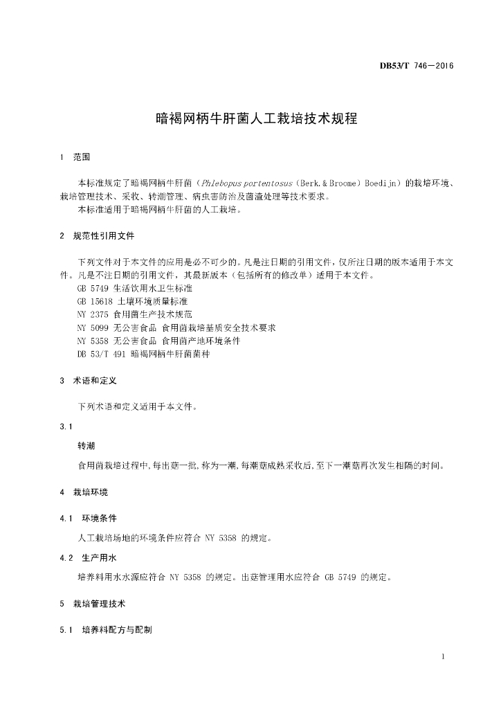 DB53/T 746-2016 暗褐网柄牛肝菌人工栽培技术规程