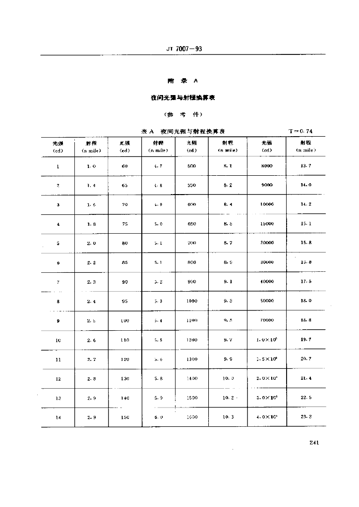 JT 7007-1993 航标灯光强测量和灯光射程计算