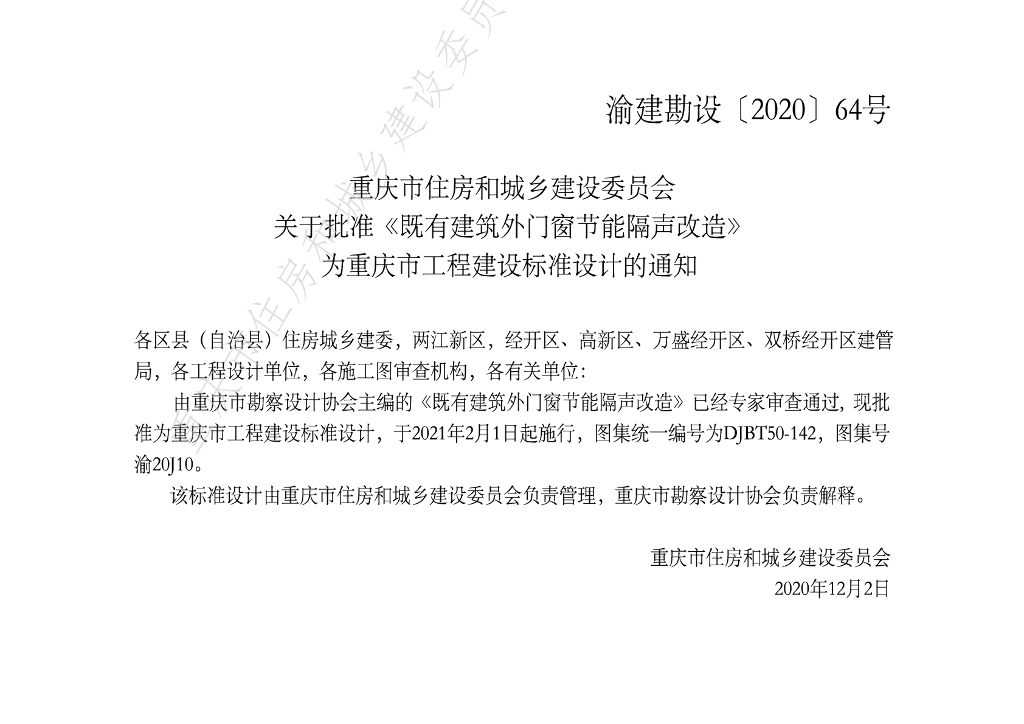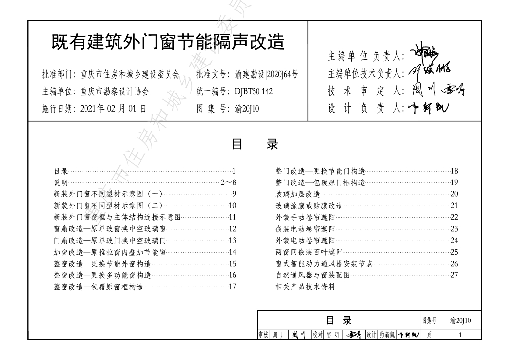渝20J10 既有建筑外门窗节能隔声改造图集(DJBT50-142)