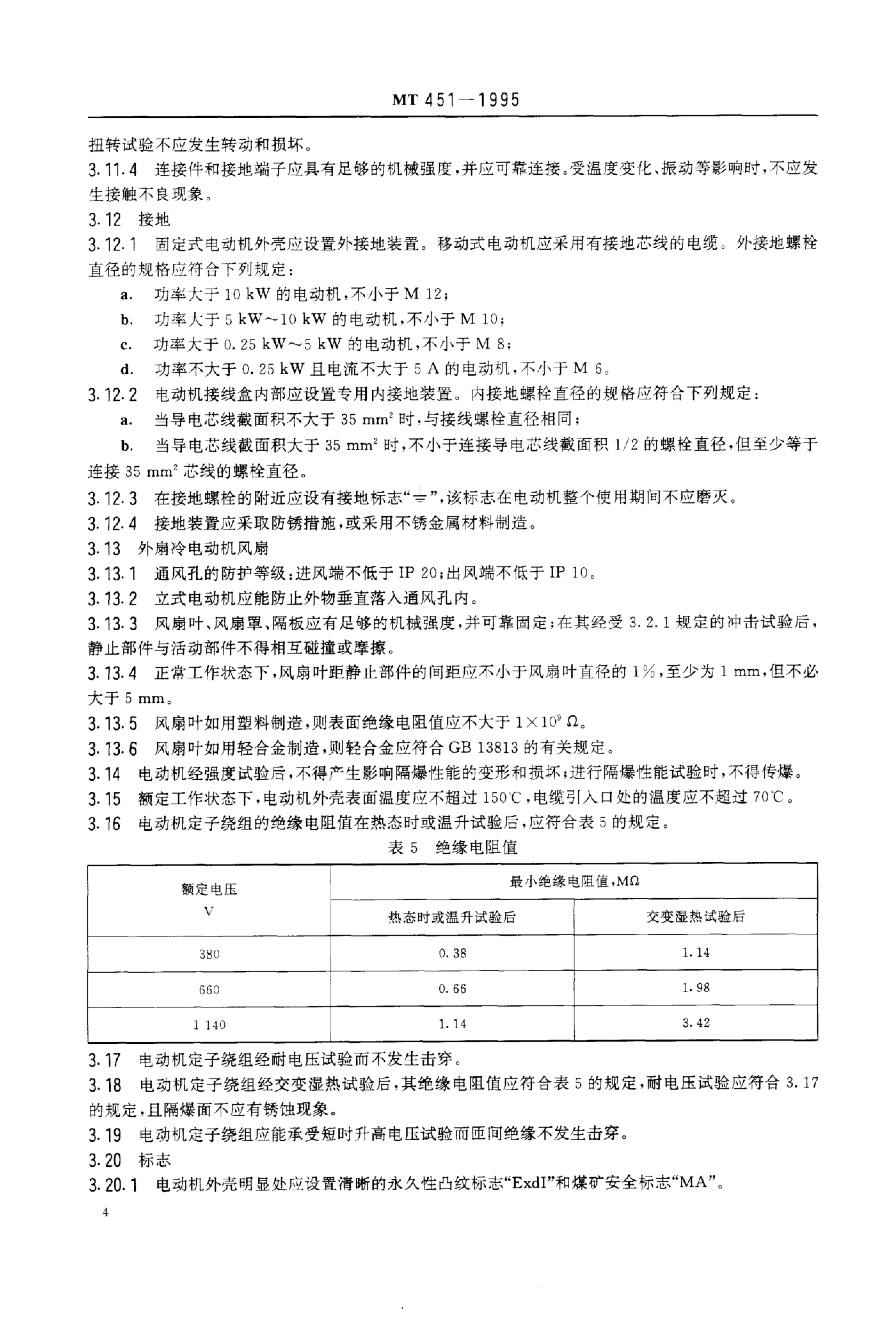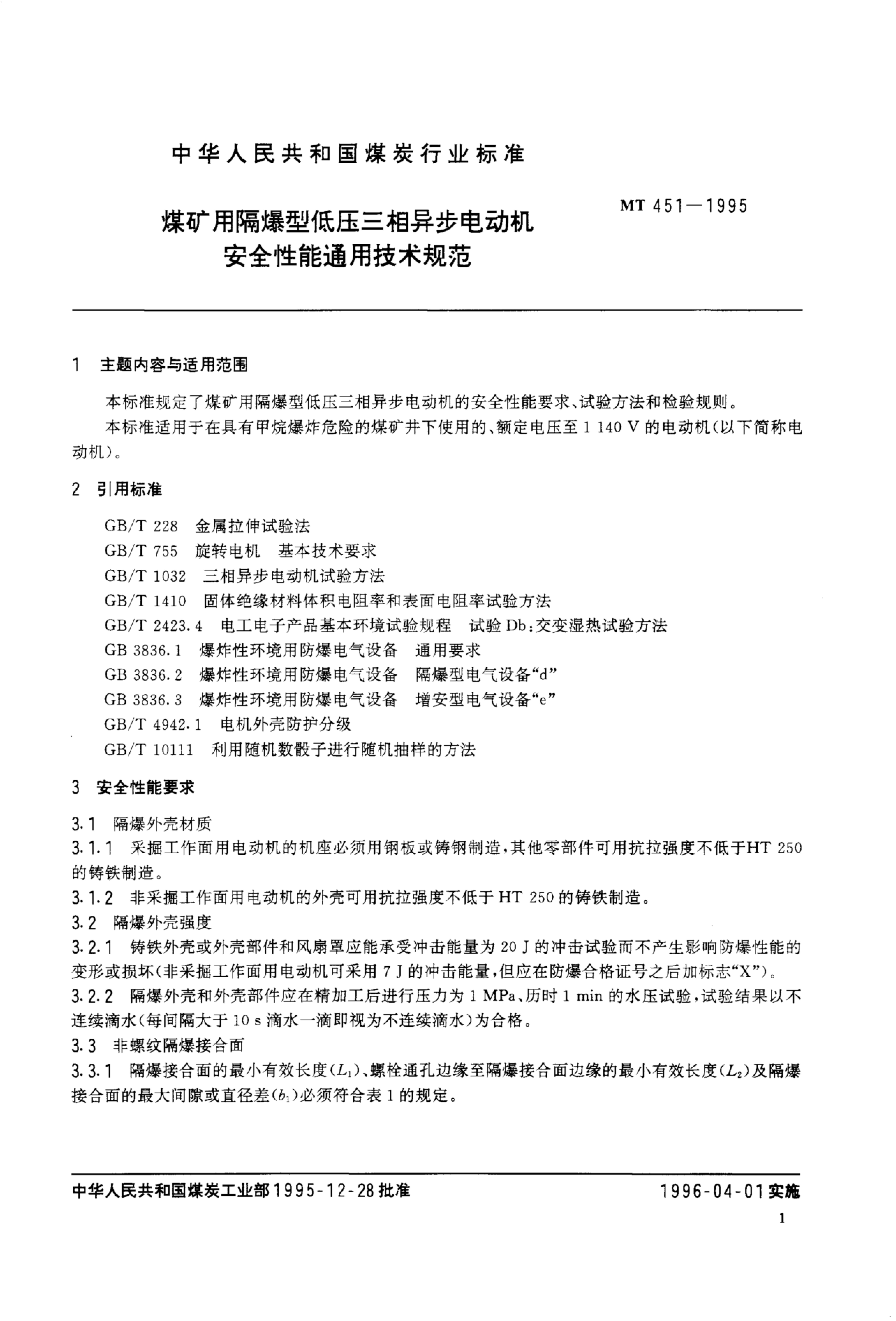 MT 451-1995 煤矿用隔爆型低压三相异步电动机安全性能通用技术规范