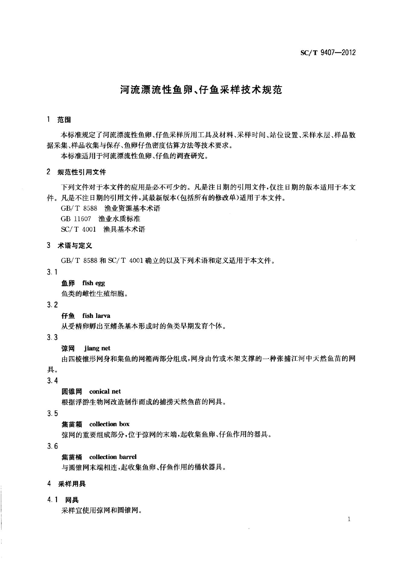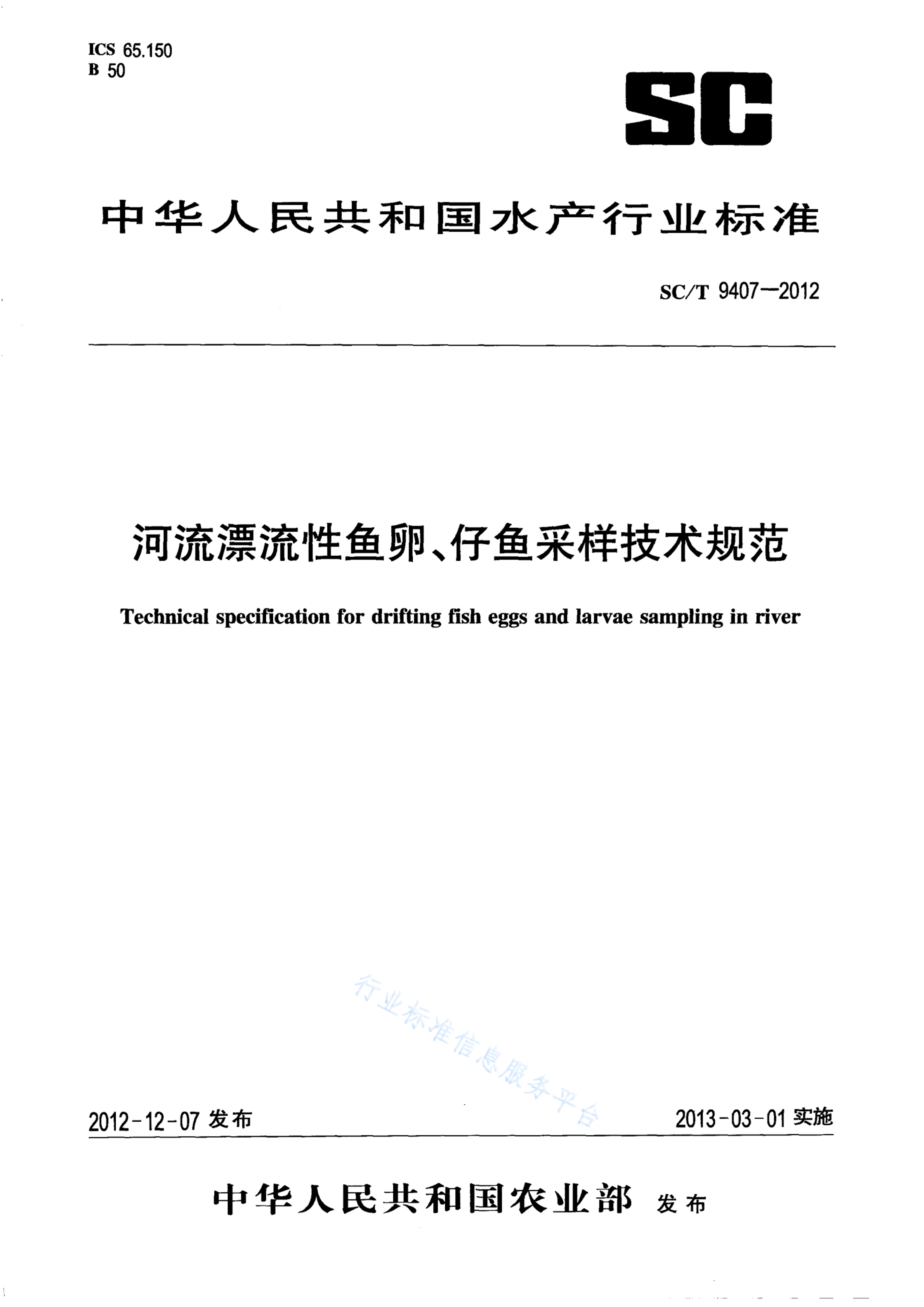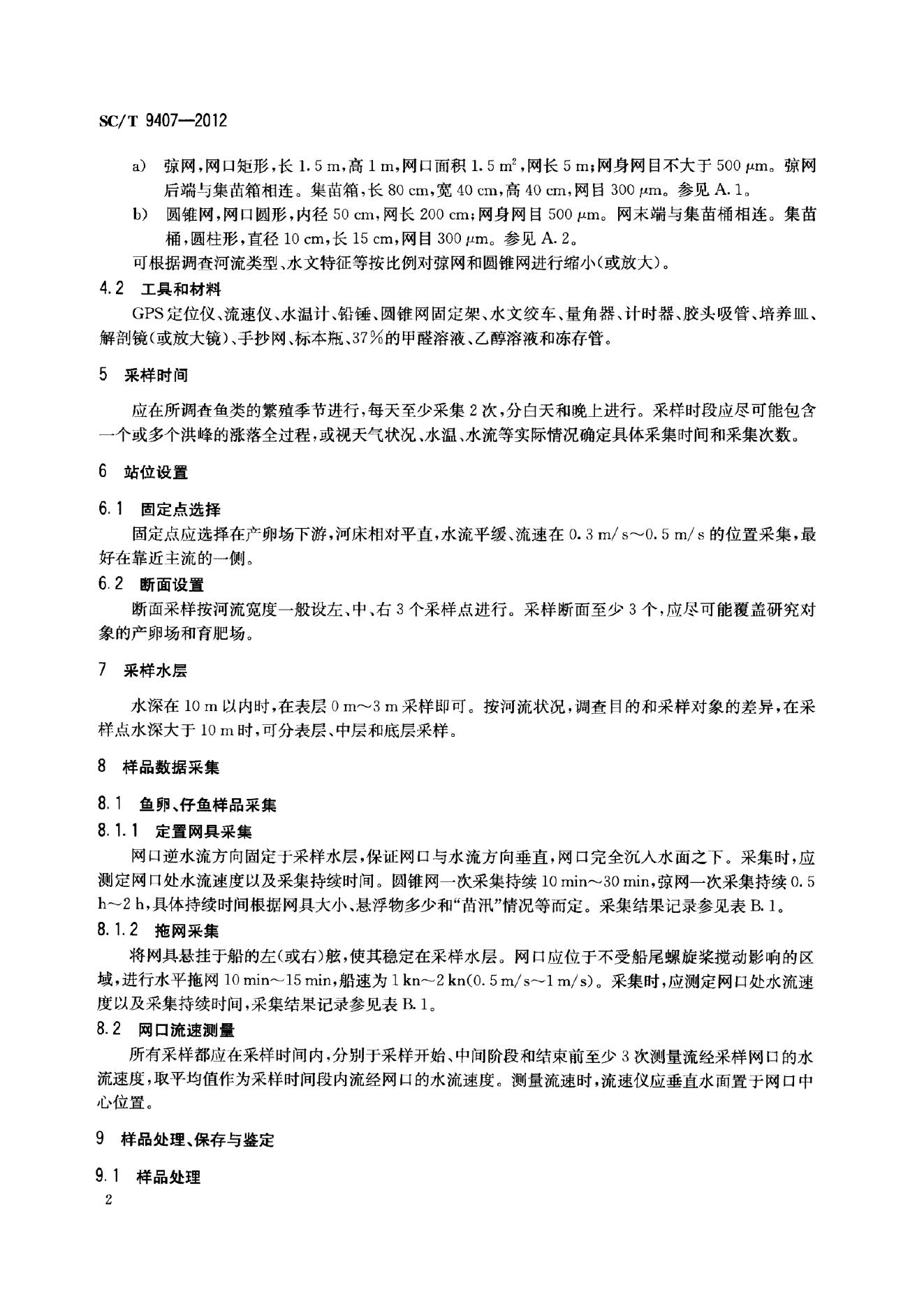 SC/T 9407-2012 河流漂流性鱼卵、仔鱼采样技术规范