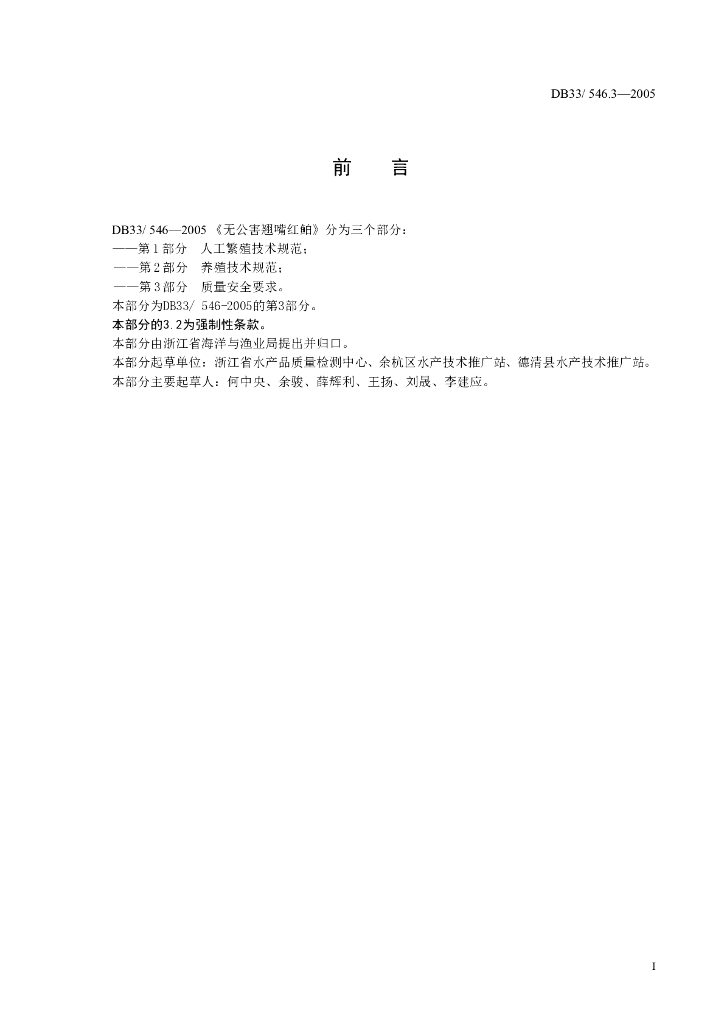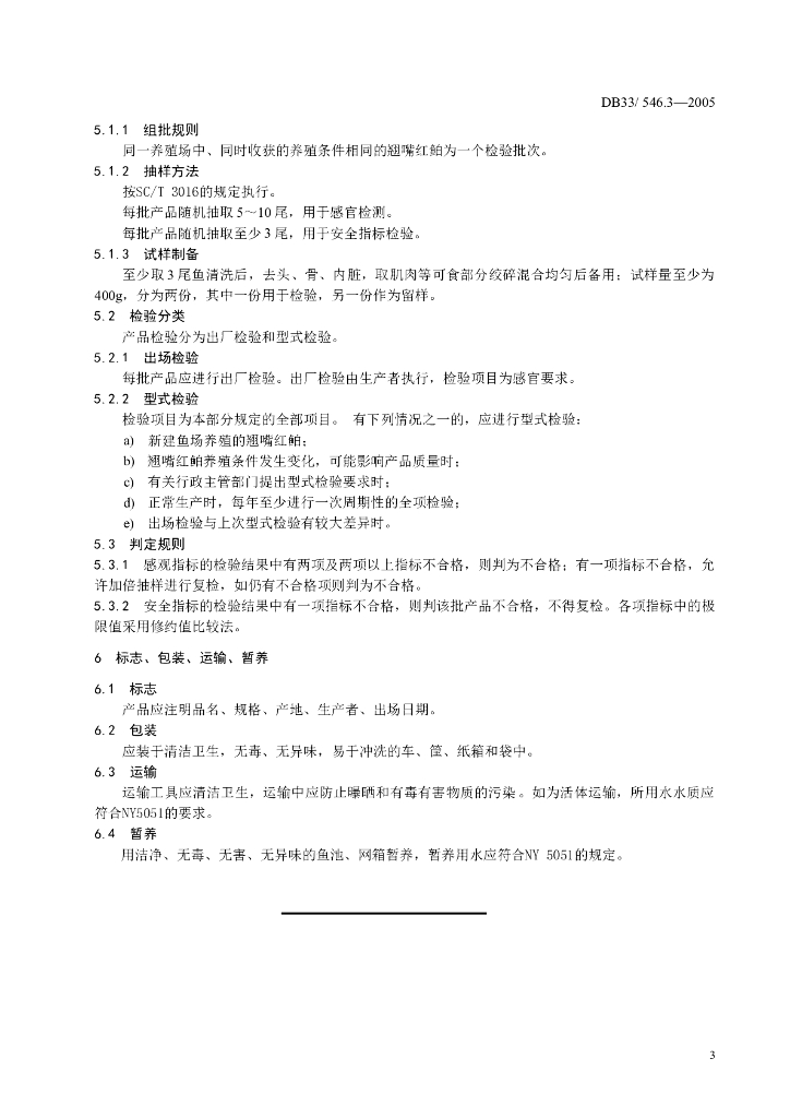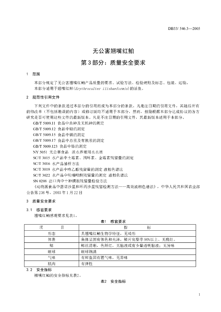 DB33/ 546.3-2005 无公害翘嘴红 第3部分:质量安全要求
