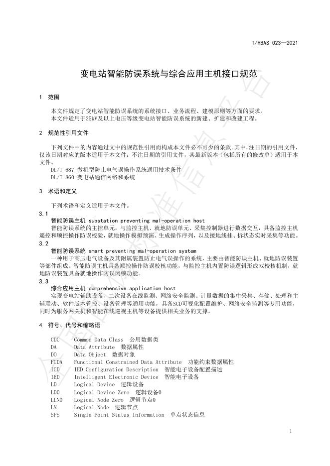 T/HBAS 023-2021 变电站智能防误系统与综合应用主机接口规范