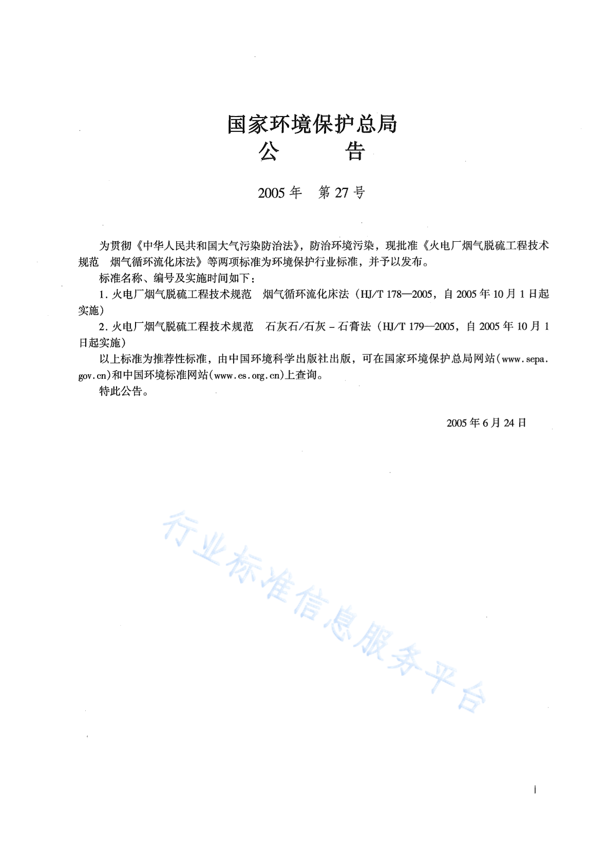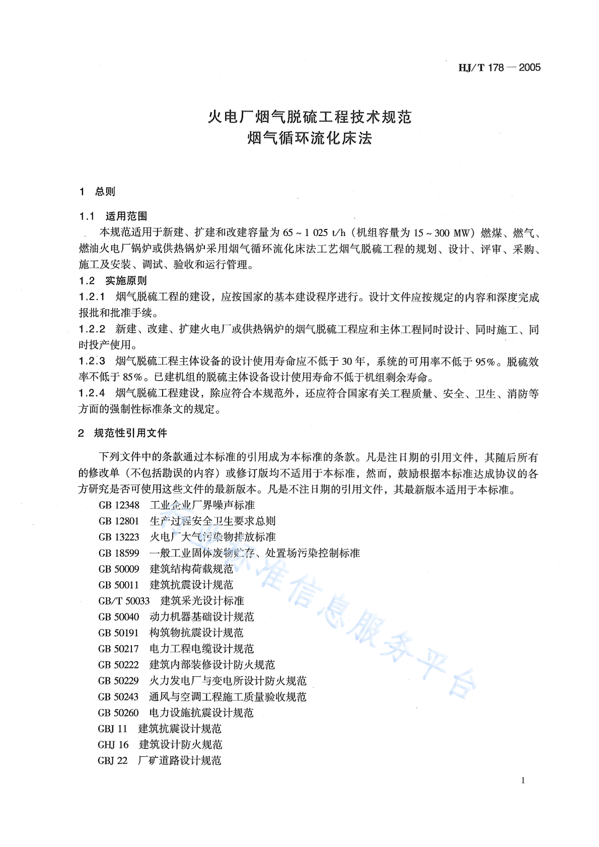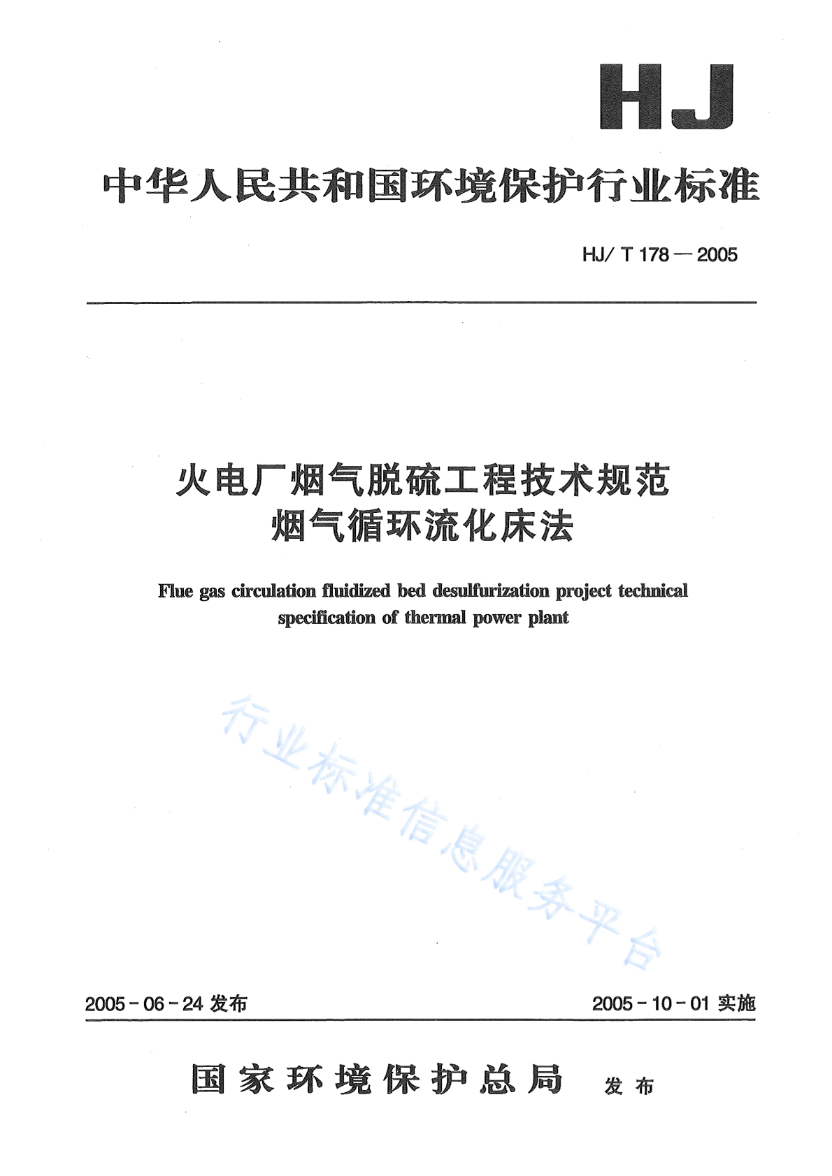 HJ/T 178-2005 火电厂烟气脱硫工程技术规范 烟气循环流化床法