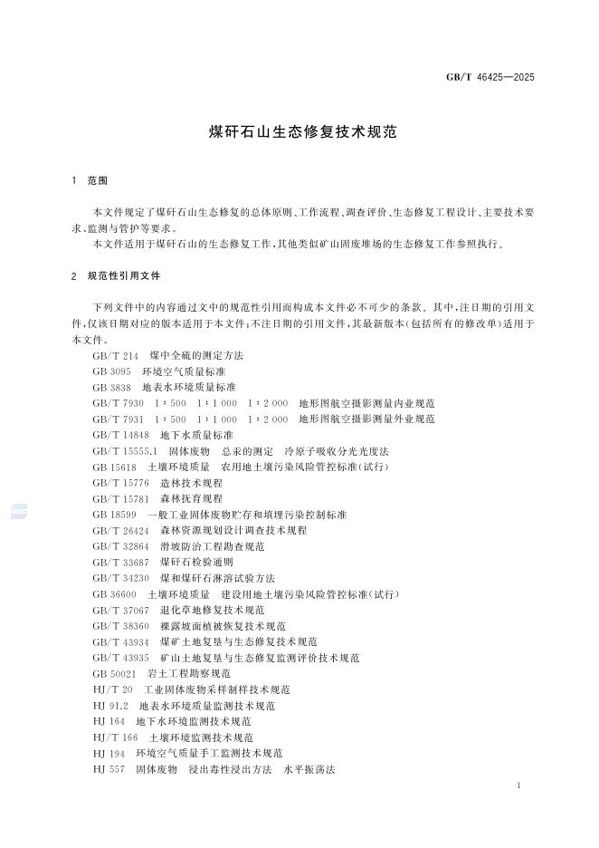 GB/T 46425-2025 煤矸石山生态修复技术规范