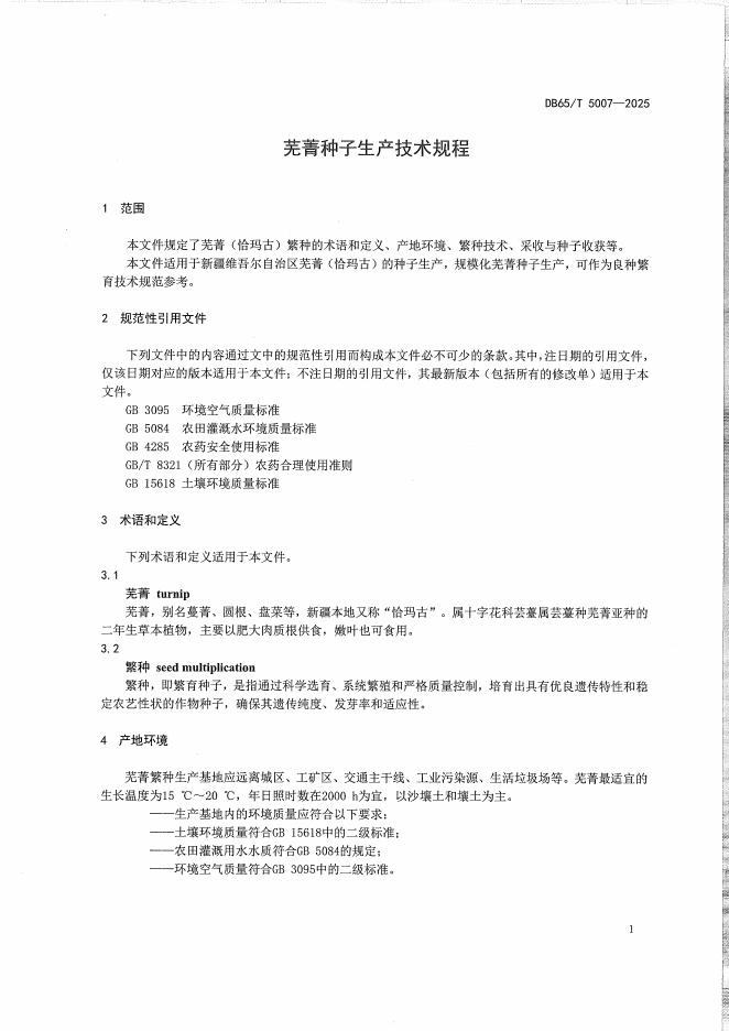 DB65/T 5007-2025 芜菁种子生产技术规程