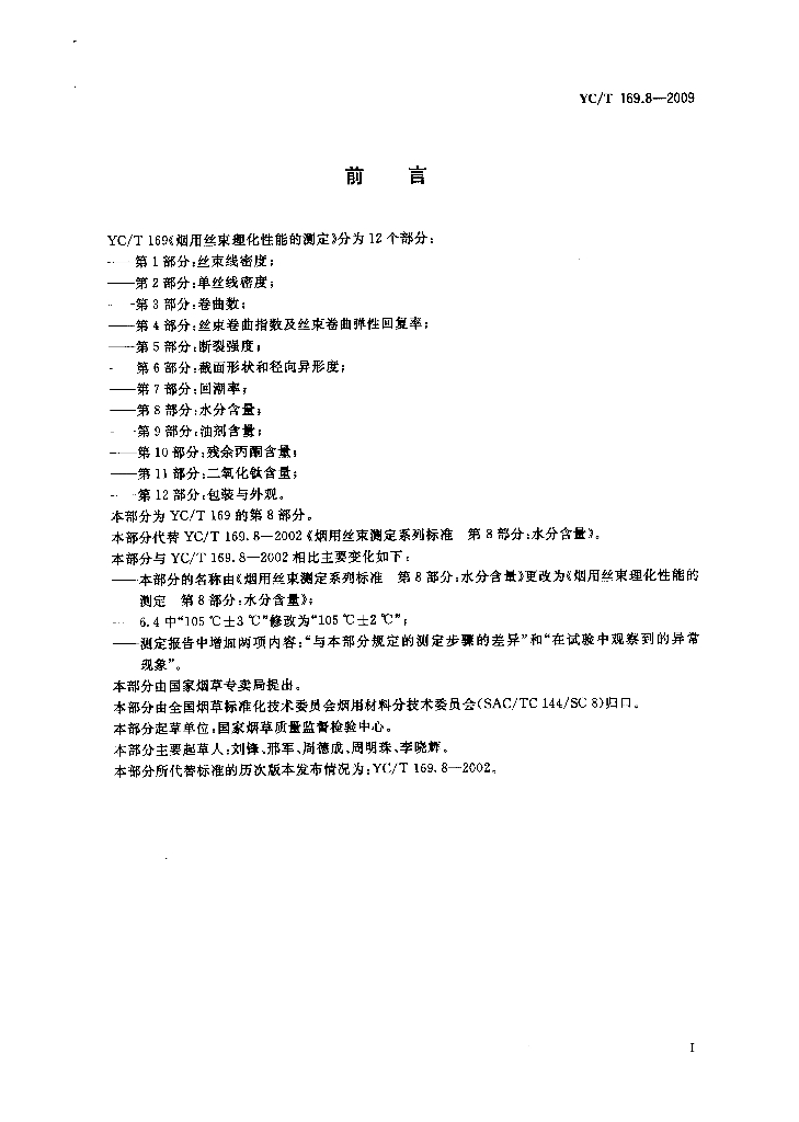 YC/T 169.8-2009 烟用丝束理化性能的测定 第8部分:水分含量