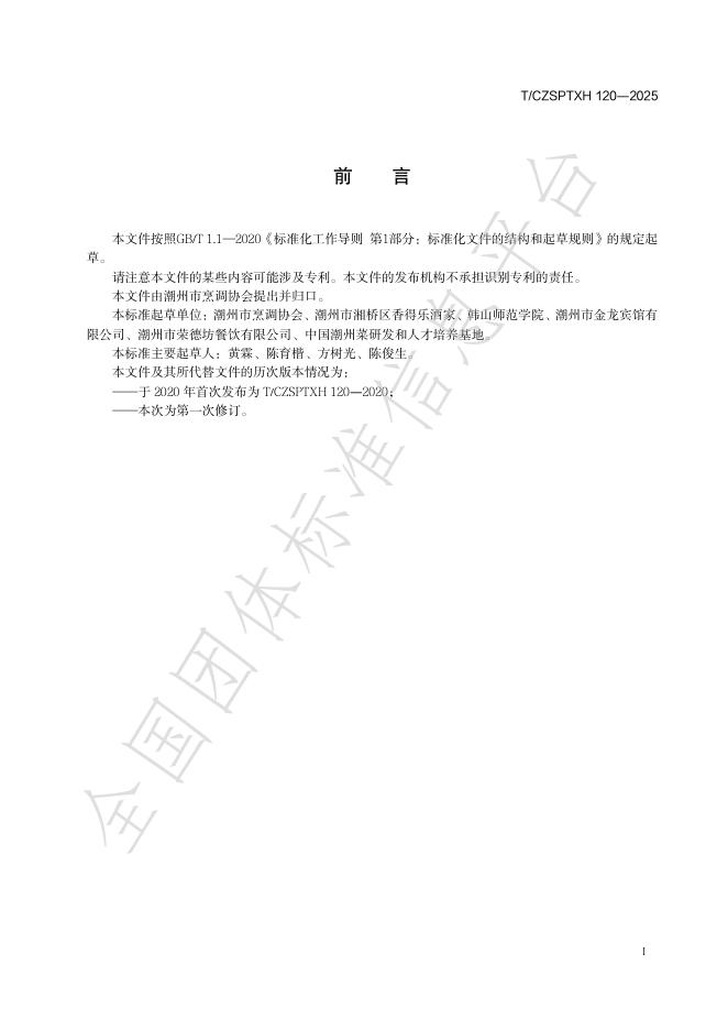 T/CZSPTXH 120-2025 潮州菜 红炖鹅掌烹饪工艺规范