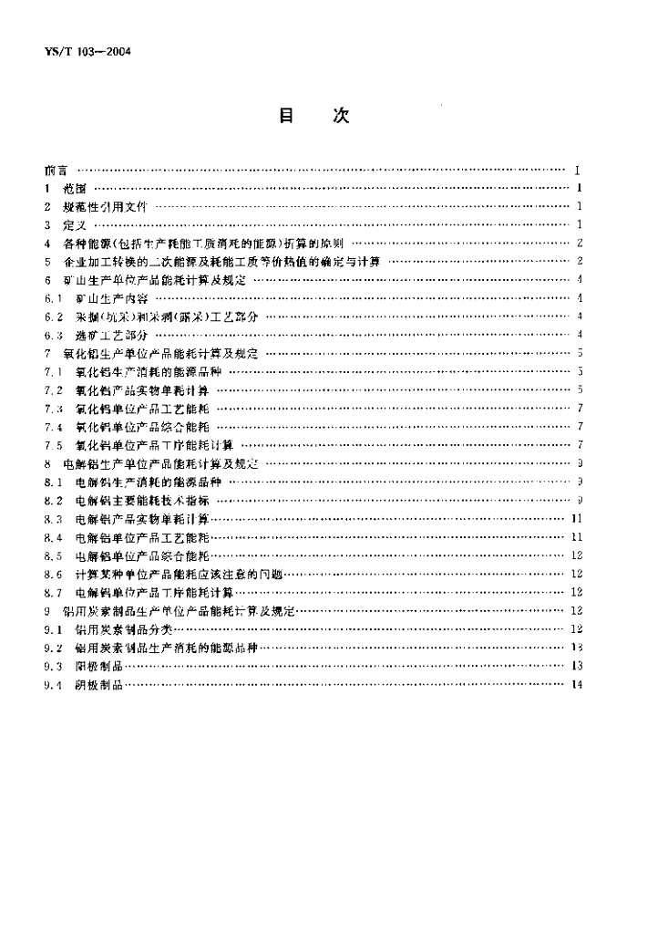 YS/T 103-2004 铝生产能源消耗
