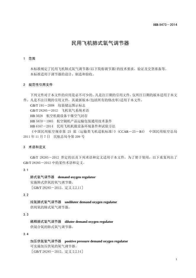 HB 8473-2014 民用飞机肺式氧气调节器(2017)