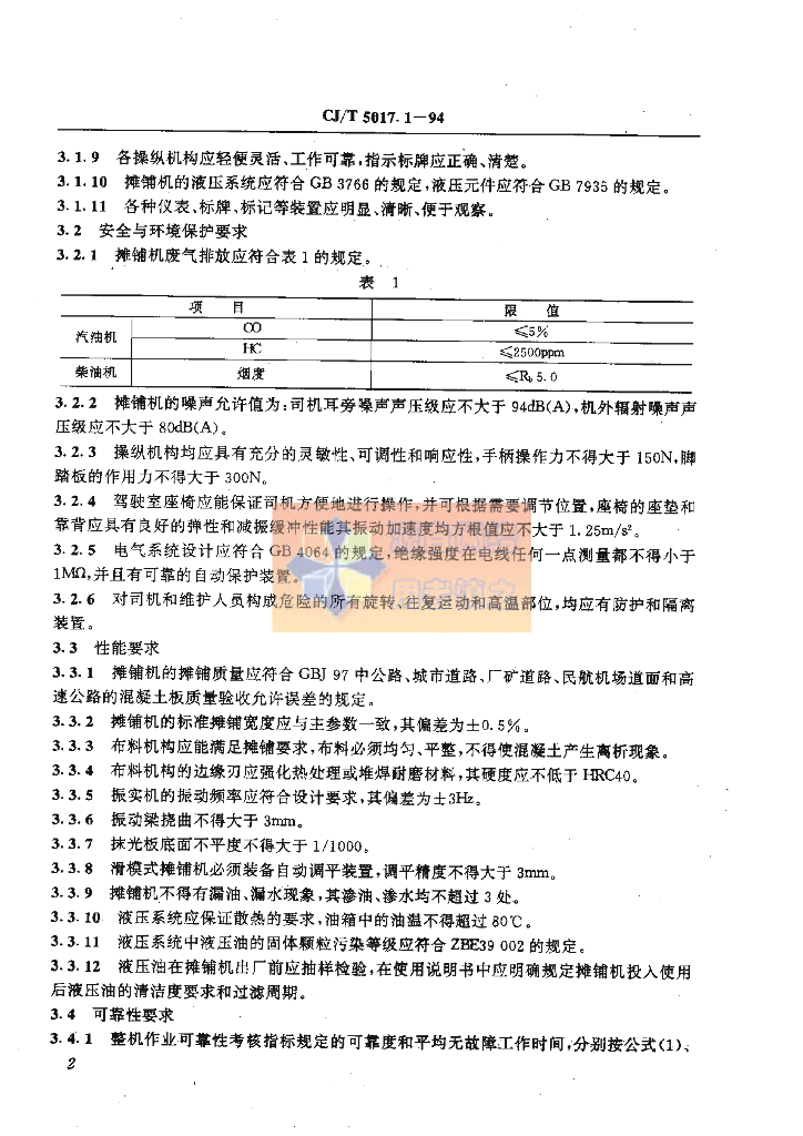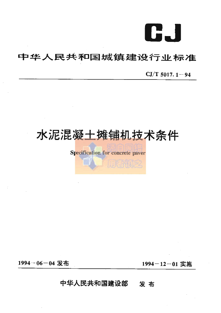 CJ/T 5017.1-1994 水泥混凝土摊铺机技术条件
