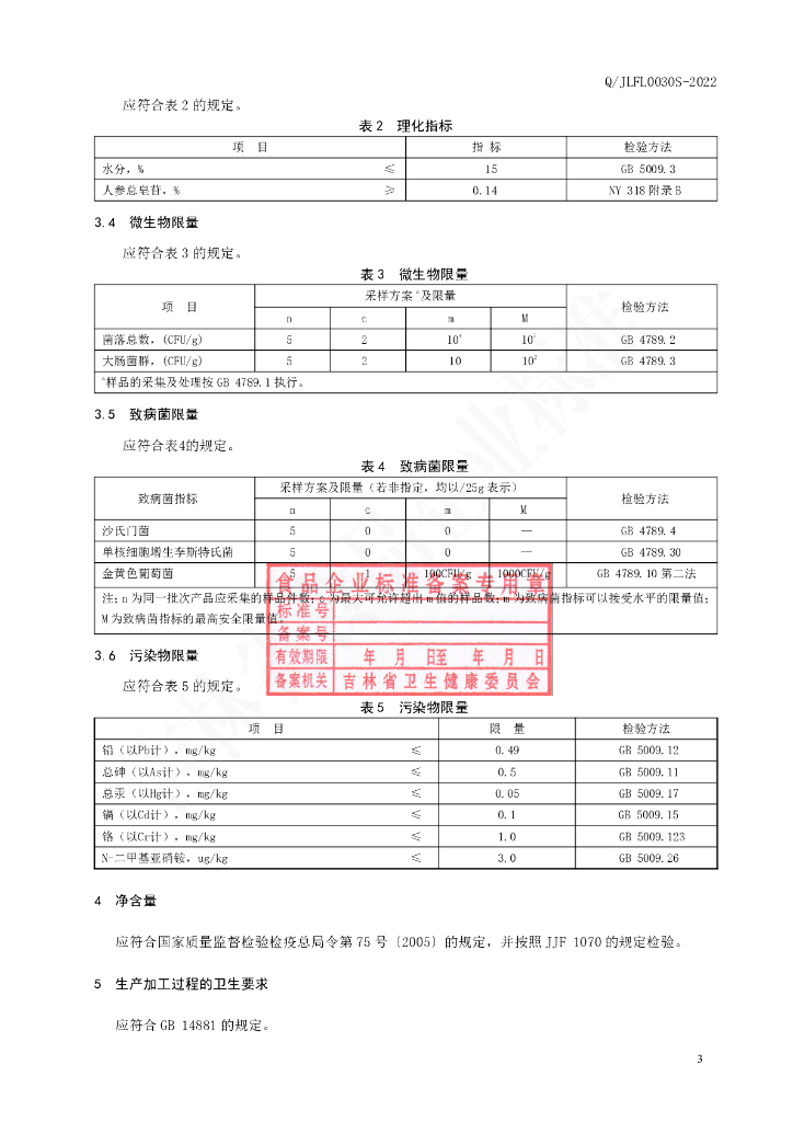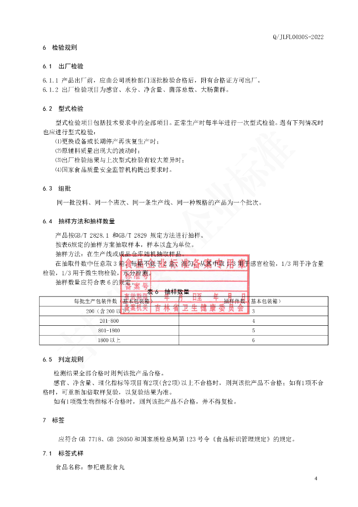 Q/JLFL 0030S-2022 参杞鹿胶食丸